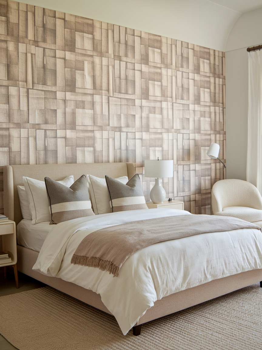 Textured wallpaper is a stylish alternative to paint for creating a subtle yet impactful feature wall. Options like grasscloth, fabric-look finishes, or soft geometric patterns add depth and interest without overpowering the space. Neutral-colored textured wallpaper works especially well behind the bed, helping to define the focal point while maintaining a calm atmosphere. This trend adds a layer of sophistication and makes the room feel more thoughtfully designed. Because the texture catches light differently throughout the day, it brings movement and dimension to the walls. It’s an excellent way to refresh your bedroom with minimal structural changes.