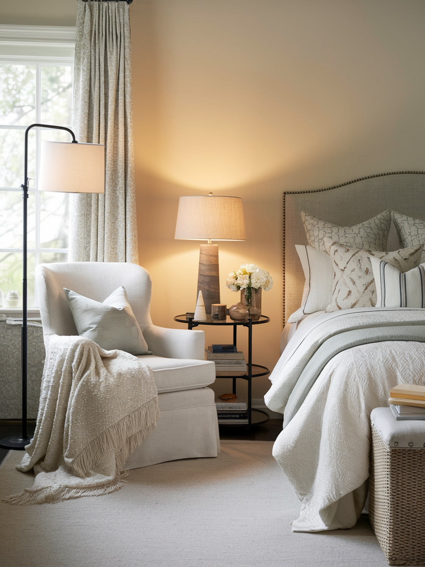 Creating a small reading corner adds comfort and functionality to your bedroom while enhancing its relaxing atmosphere. A comfortable chair, a soft throw, and a floor lamp can transform an unused corner into a quiet retreat for reading or unwinding. Adding a small side table or shelf keeps books and essentials within reach. Choosing fabrics and colors that match your bedroom palette ensures the corner blends seamlessly with the overall design. This trend encourages slower moments and self-care, making your bedroom feel more like a personal sanctuary rather than just a sleeping space.