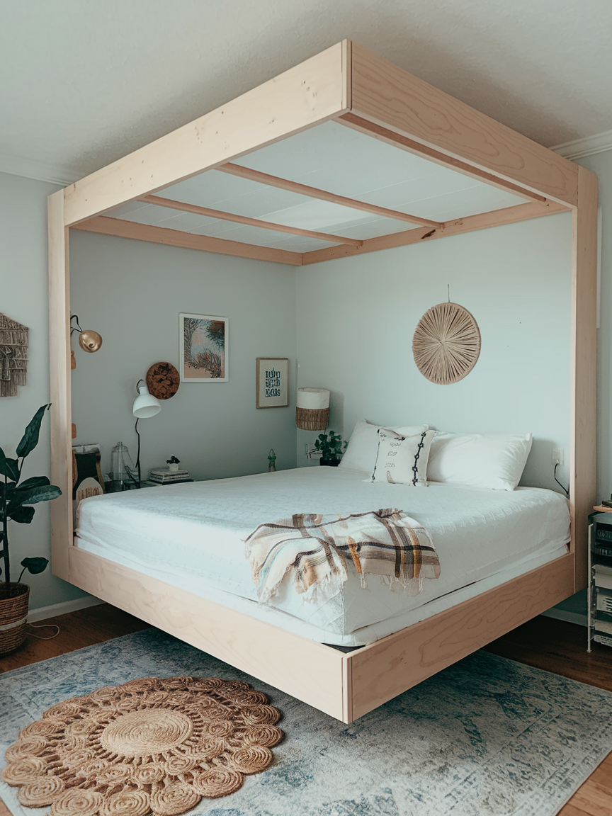 A floating bed design creates a sleek and modern aesthetic that instantly updates the look of a bedroom. Platform beds with hidden supports give the illusion that the bed is hovering above the floor, making the room feel more open and contemporary. Adding LED lighting underneath enhances the floating effect while providing soft ambient illumination at night. This style works especially well in minimalist or modern interiors where clean lines and simplicity are key. A floating bed not only looks visually striking but also contributes to a light, uncluttered atmosphere that enhances relaxation.