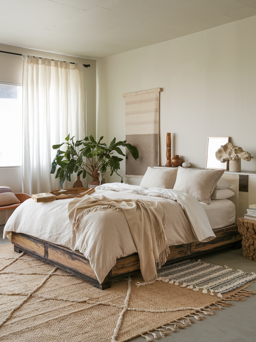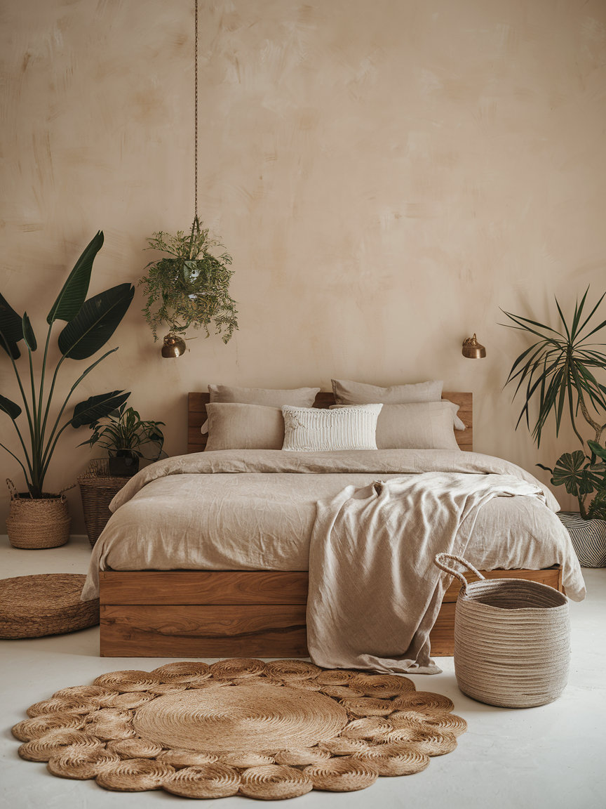 Bringing natural materials into the bedroom is a major trend that promotes warmth and connection to nature. Elements like wood furniture, woven baskets, jute rugs, and linen textiles create an organic and inviting atmosphere. Earthy tones such as terracotta, sand, olive, and clay enhance the natural aesthetic while keeping the space grounded and calm. These materials also add texture and depth, which helps neutral or minimalist rooms feel more interesting. Incorporating handcrafted or sustainable pieces further enhances the relaxed, authentic vibe. A nature-inspired bedroom feels peaceful, timeless, and perfectly aligned with modern design trends focused on comfort and simplicity.