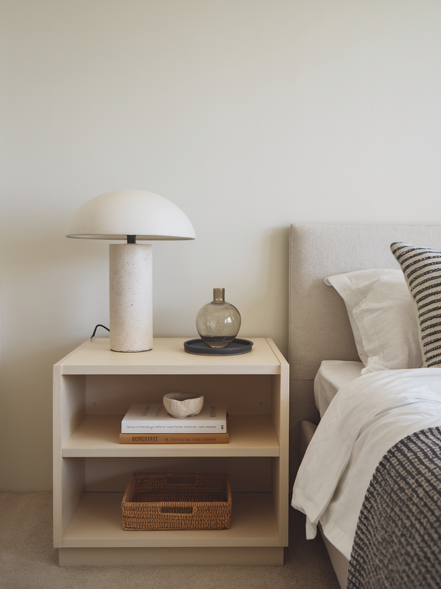 A clean and uncluttered nightstand instantly makes a bedroom feel more organized and serene. Instead of crowding the surface with multiple items, choose a few essentials such as a stylish lamp, a small tray, a book, and perhaps a simple decorative object. Keeping the color palette cohesive helps maintain a calm and balanced look. Minimal styling also makes daily routines easier while allowing each piece to stand out. This approach works especially well in modern and contemporary bedrooms where simplicity is key. A thoughtfully styled nightstand contributes to a peaceful environment and reinforces the overall sense of intentional design.