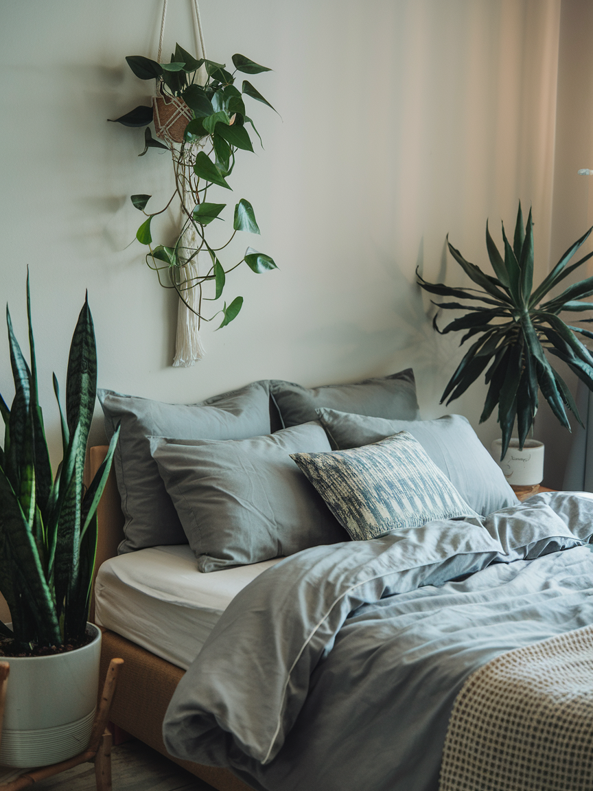 Adding indoor plants instantly brings life and freshness into a bedroom. Greenery improves the visual appeal of the space while creating a calming, nature-inspired atmosphere. Low-maintenance plants like snake plants, pothos, or peace lilies work well in bedrooms with varying light conditions. Placing plants on nightstands, shelves, or in floor planters helps soften furniture lines and add natural texture. The presence of greenery also enhances air quality and promotes relaxation. This simple addition makes the room feel more vibrant, welcoming, and connected to the outdoors without requiring a major design overhaul.