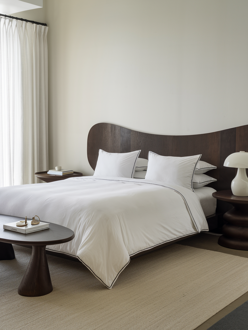 Curved silhouettes are trending in bedroom design because they create a softer and more inviting look. Rounded nightstands, arched mirrors, and curved headboards help balance the sharp lines often found in modern interiors. These shapes add visual flow and make the space feel more relaxed and comfortable. Incorporating just one or two curved pieces can update the room without changing the entire layout. Neutral or natural finishes keep the design timeless while allowing the gentle shapes to stand out. This trend adds subtle elegance and a contemporary feel that enhances both style and comfort.