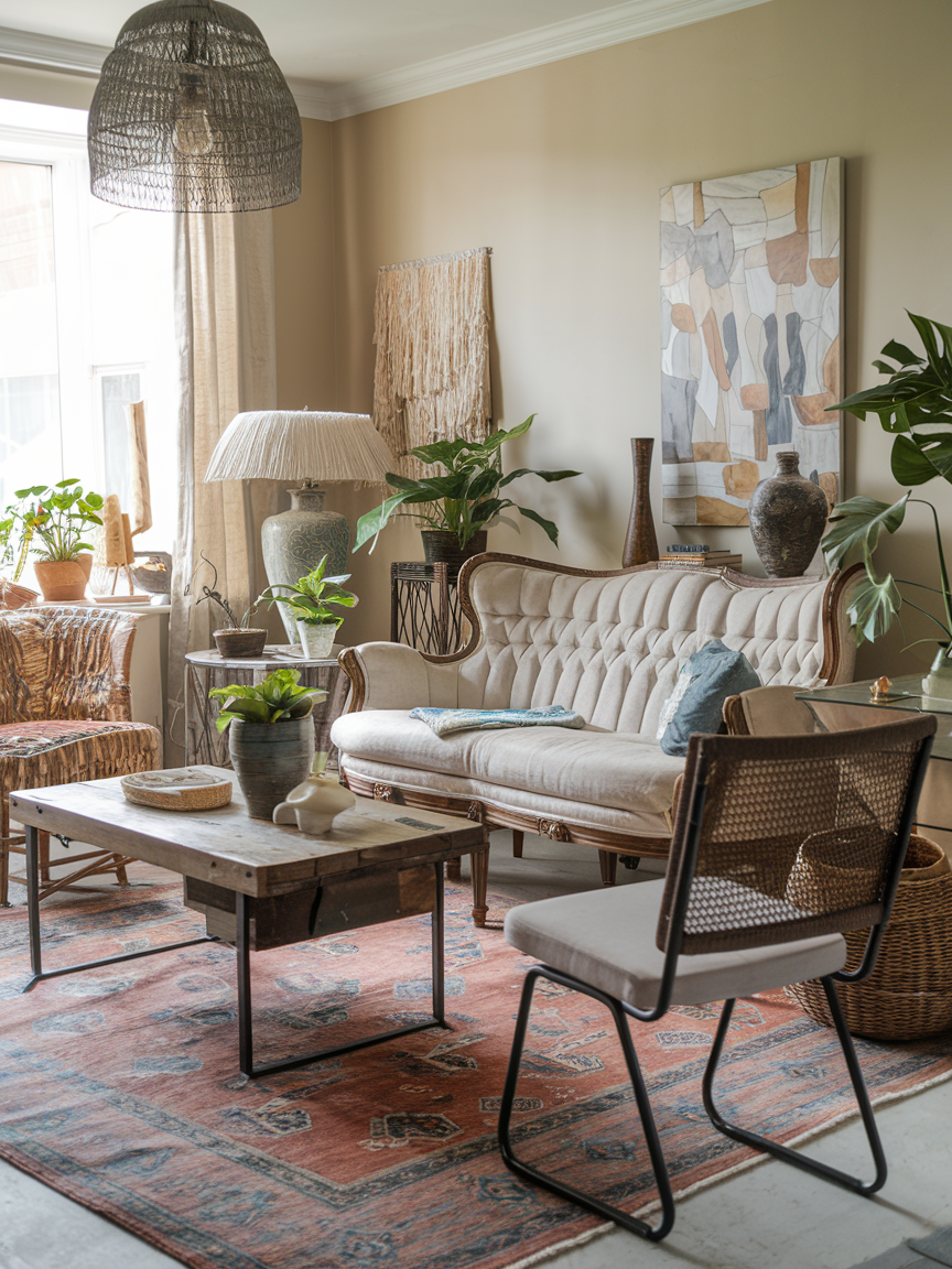 Bohemian style is not about shiny, brand-new furniture. It is about pieces that have a story. A vintage armchair, a secondhand sideboard, or a flea market coffee table can bring warmth and authenticity to your living room. These pieces often have unique details you just cannot find in mass-produced furniture, like hand-carved designs or aged patina. Mixing vintage finds with modern accents creates that layered, lived-in look that makes Boho style so charming.