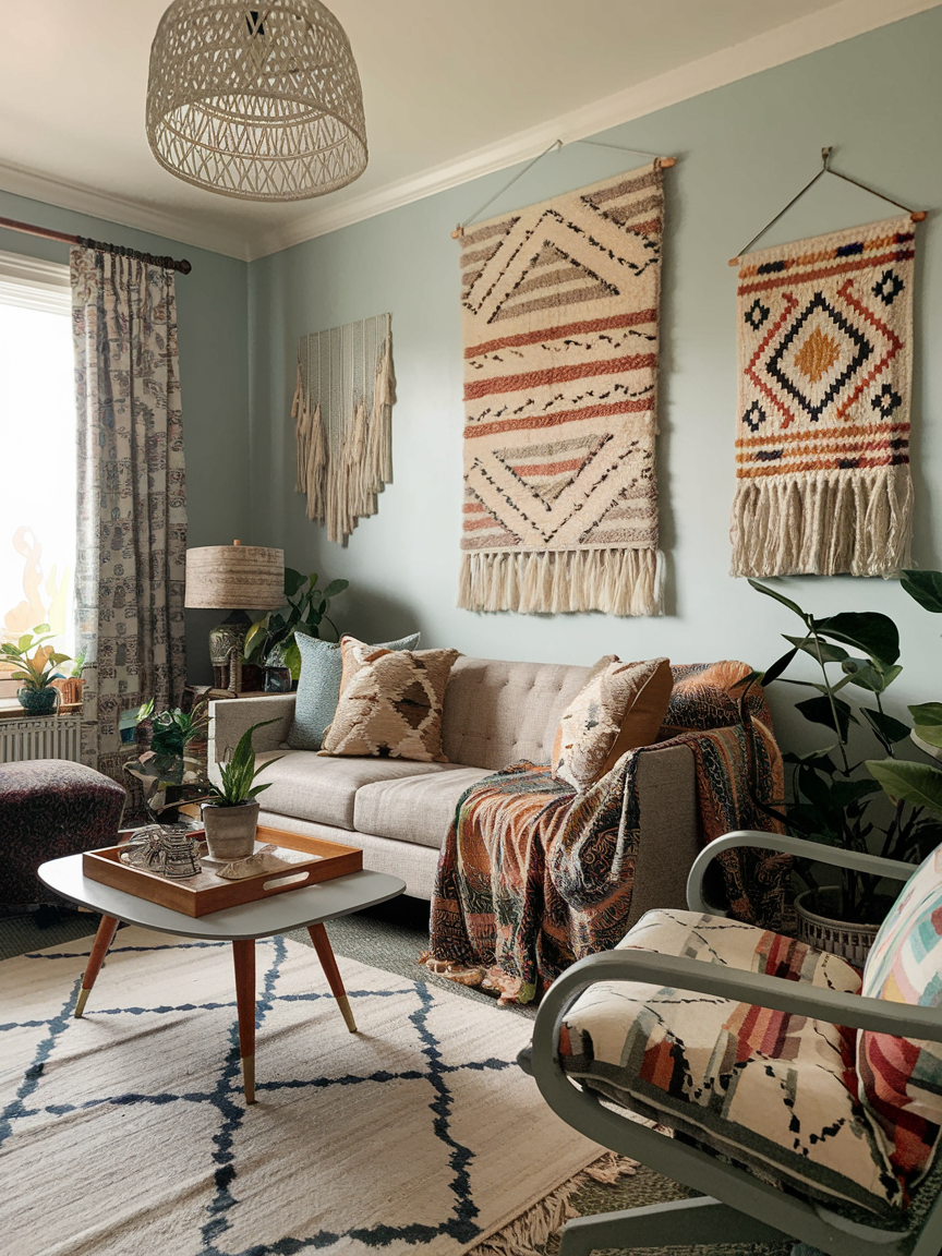 Patterns are the heartbeat of Bohemian decor. Stripes next to florals? Yes, please. Tribal prints mixed with Moroccan designs? Absolutely. The key is confidence and a little bit of chaos. You do not have to match everything perfectly; instead, aim for patterns that share a similar color tone so they do not completely overwhelm the eye. Mixing patterns in pillows, throws, and even wall art can give your living room an adventurous, story-filled vibe. It is like telling a travel diary through your textiles.