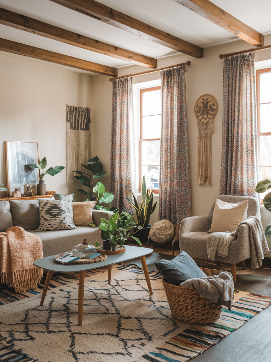 Imagine soft throws draped across a sofa, rattan chairs paired with eclectic pillows, woven rugs that add warmth underfoot, and walls sprinkled with art that tells a story. Add in natural elements like wood, plants, and handcrafted pieces, and suddenly the room transforms into a sanctuary that feels both personal and welcoming. The beauty of bohemian design is that it celebrates individuality, making it easy to blend vintage treasures, modern accents, and global-inspired finds into one harmonious space.