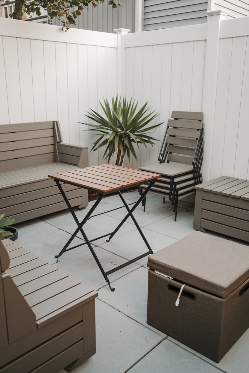 When space is limited, choosing furniture that serves multiple purposes is key. Instead of cluttering your patio with bulky pieces, opt for benches with hidden storage, foldable tables, or stackable chairs. These allow you to maximize functionality without crowding the area. Storage ottomans can double as extra seating, and a drop-leaf table provides flexibility, letting you expand or reduce your dining space as needed. Investing in furniture with built-in storage ensures that every piece serves a purpose while keeping your patio organized and visually open.