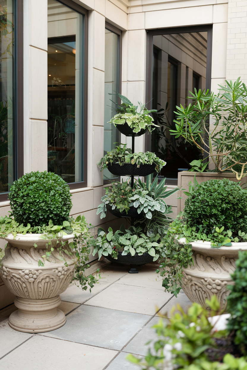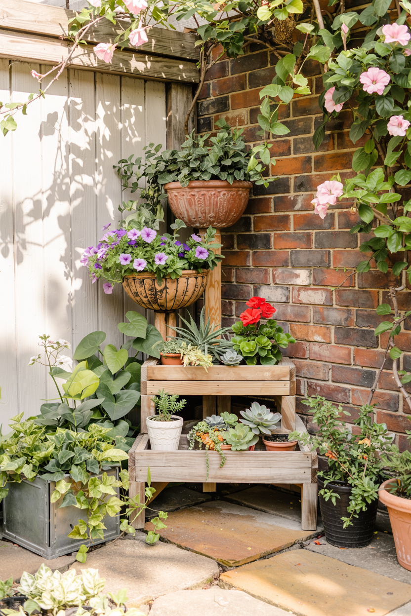 Utilize corners with tiered planters or corner plant stands to add greenery without taking up walking space. Stacking plants at varying heights creates a layered, lush effect that brings depth to your patio. Use a combination of trailing plants, succulents, and flowering varieties to keep the display dynamic and interesting. Corner planters also help define the layout, making the patio feel more structured and thoughtfully designed.