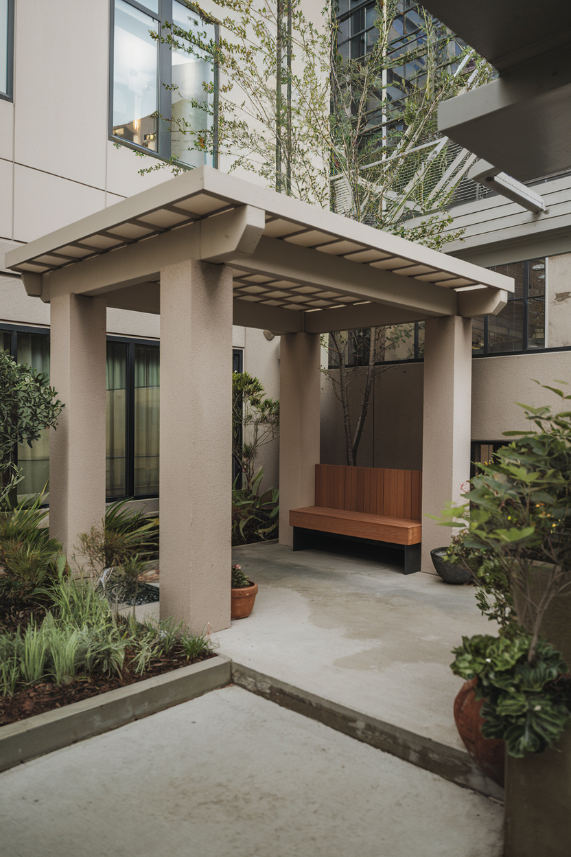 A small pergola or canopy can define your patio space while offering shade and privacy. Choose a light fabric drape for an airy, romantic look, or install a retractable awning for adjustable coverage. Adding climbing plants like wisteria or jasmine can further enhance the ambiance, making the pergola a beautiful and functional centerpiece. Even in compact areas, a well-placed pergola can create the feeling of a secluded retreat, shielding your space from direct sunlight while maintaining an open and inviting atmosphere.