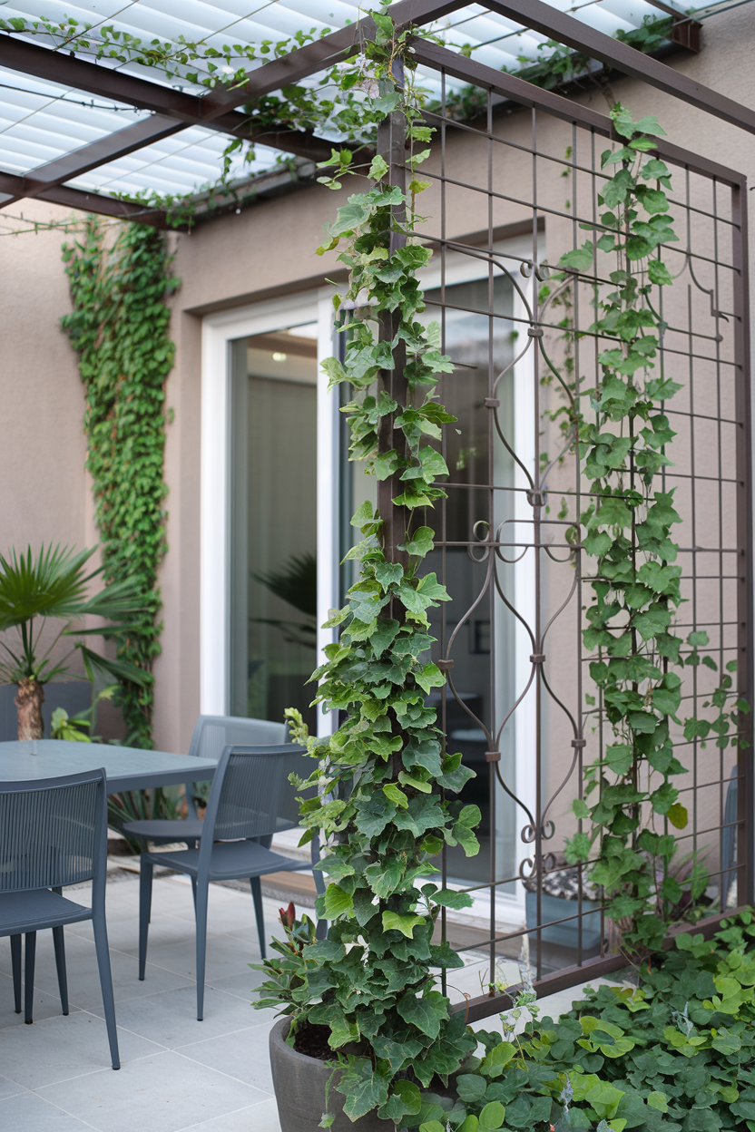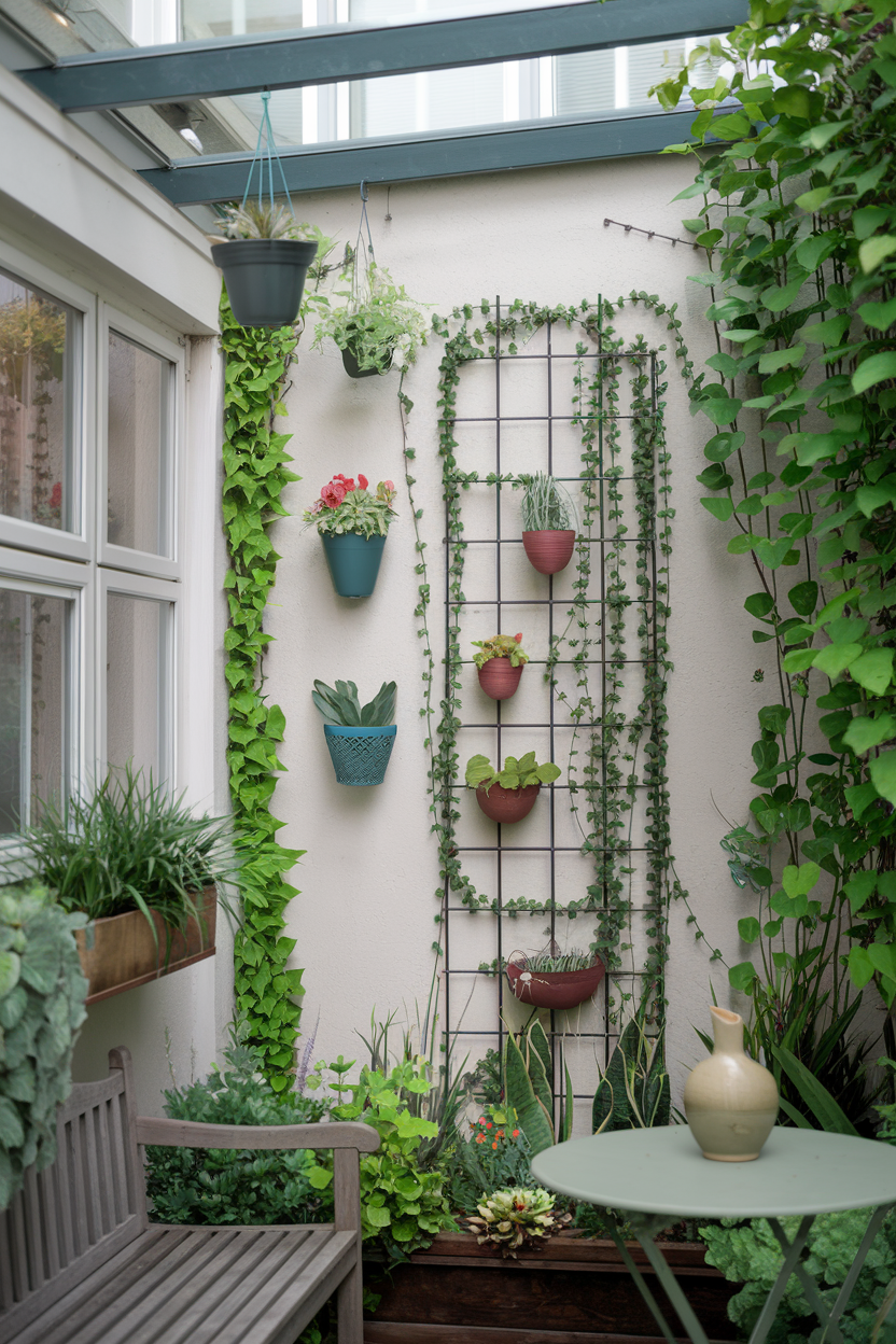 A trellis is a stylish and space-saving way to introduce greenery to a small patio. Attach one to a wall or use a freestanding version to support climbing plants like ivy, jasmine, or roses. This not only enhances privacy but also adds a lush, garden-like atmosphere. A decorative trellis can also serve as an elegant backdrop for outdoor seating areas, making your patio feel more enclosed and cozy.
