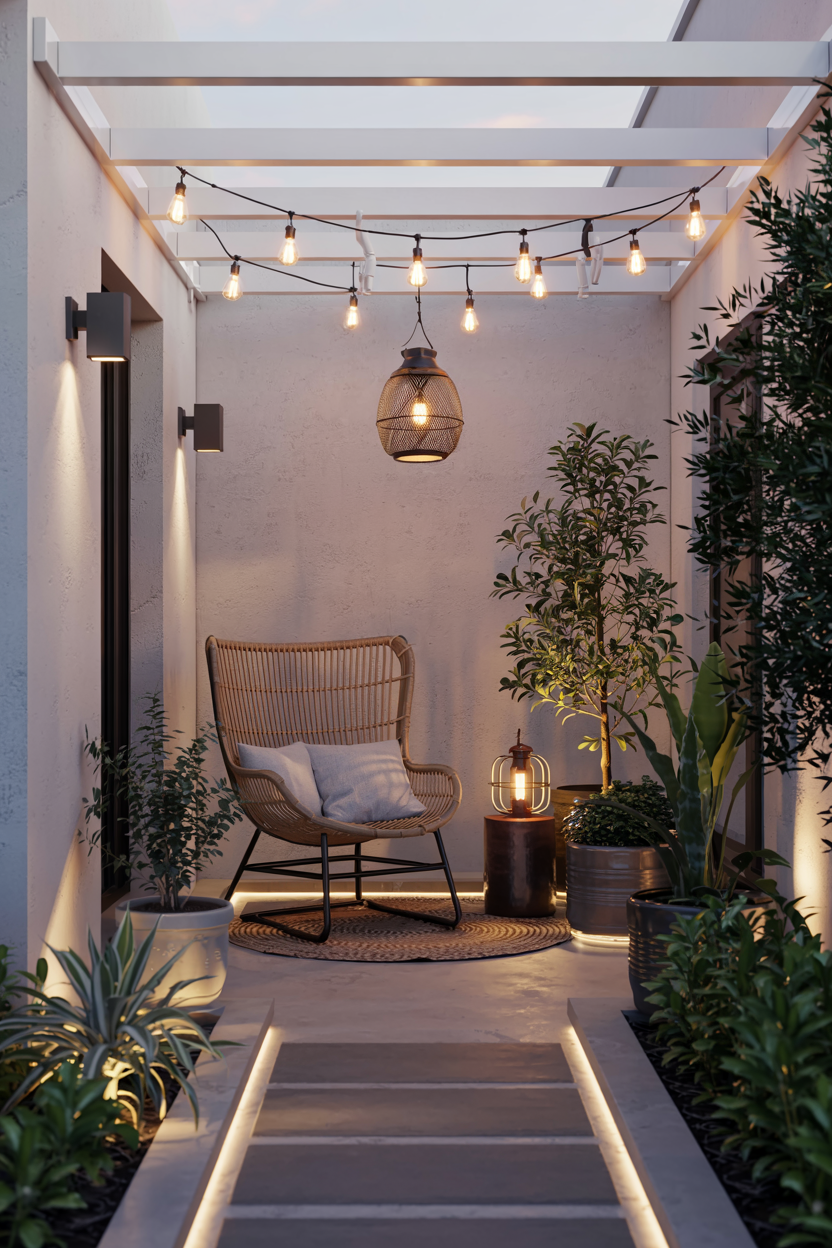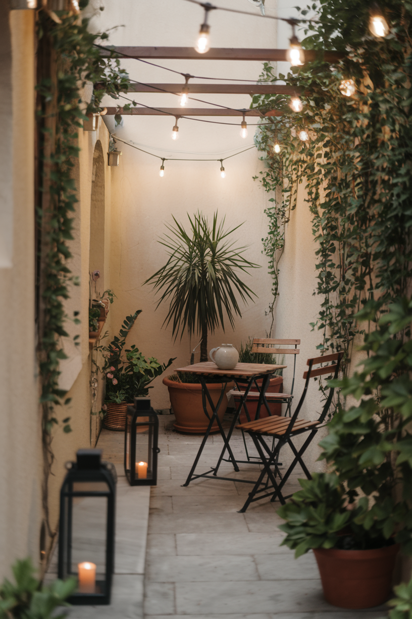 Enhance the ambiance with soft lighting. String lights, lanterns, or solar-powered LED fixtures add a cozy glow, making your small patio perfect for evening relaxation. Consider layering different types of lighting, such as overhead string lights for a twinkling effect, wall-mounted sconces for a warm glow, and candle lanterns for a touch of romance. Solar-powered lights are an eco-friendly option, reducing electricity consumption while keeping your space well-lit and inviting.