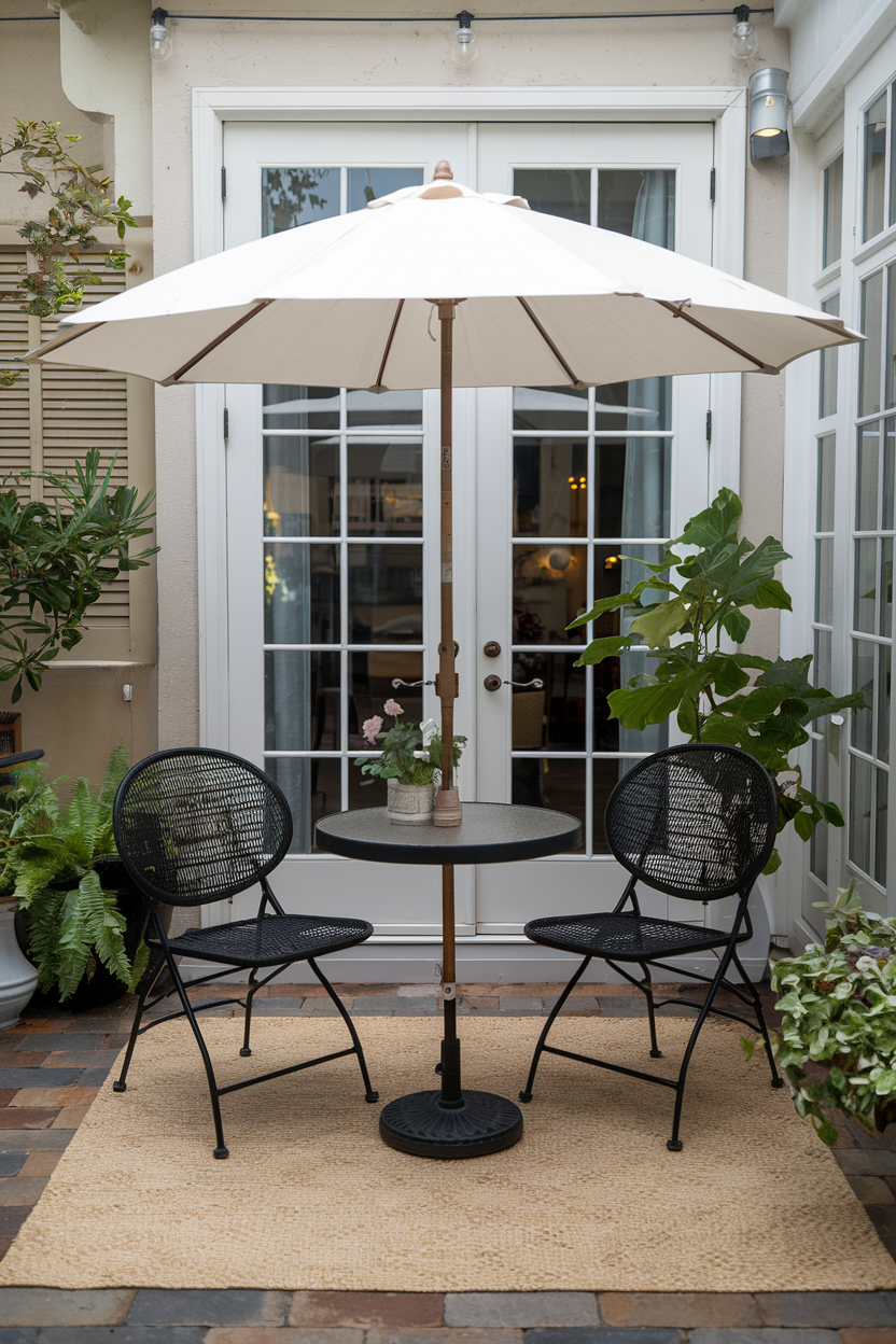 A small round table with two chairs instantly creates an intimate dining setting, perfect for morning coffee or evening drinks. Opt for foldable or lightweight designs that can be easily moved or stored when needed. A wrought iron or rattan bistro set adds a touch of elegance without taking up much room. For an added charm, incorporate small potted plants or a lantern centerpiece to enhance the ambiance. This setup is ideal for patios with limited space, offering both functionality and style.