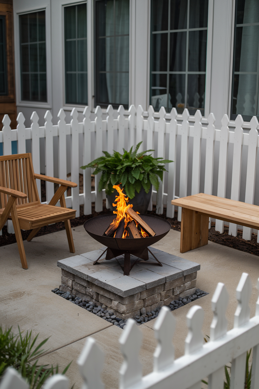 A small fire pit or tabletop fireplace creates a warm focal point without overwhelming the space. It’s perfect for cool evenings and adds a cozy, inviting element. Fire pits come in various designs, from portable propane models to built-in stone features. Opt for a smokeless fire pit to keep the area clean and comfortable. Arrange seating around it to encourage conversation and relaxation, making your patio a year-round retreat.