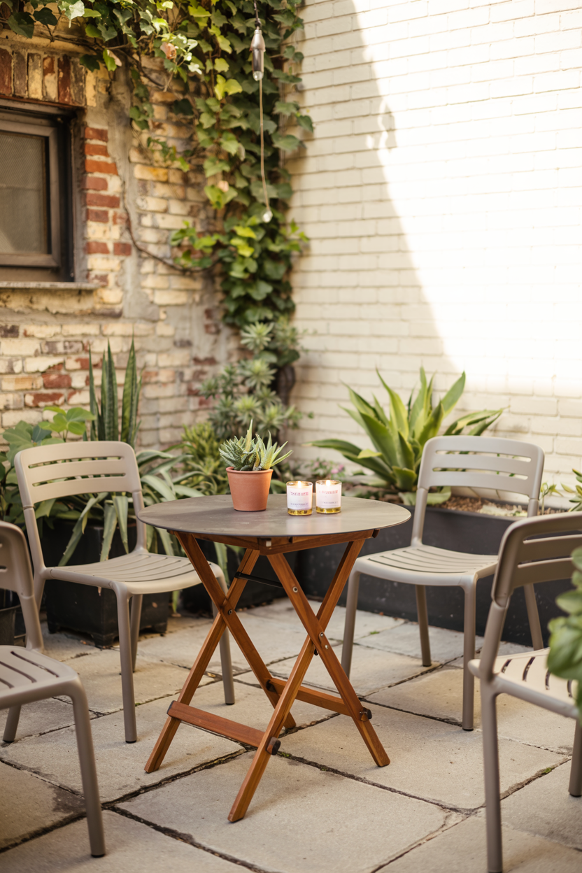 A small patio can still be perfect for dining with the right furniture. A classic bistro set, with a foldable table and chairs, offers a stylish and space-saving solution for morning coffee or intimate dinners. Choose weather-resistant materials such as wrought iron or acacia wood to ensure durability. Positioning your bistro set near a wall or railing allows you to make the most of the available space while keeping the patio open and uncluttered.