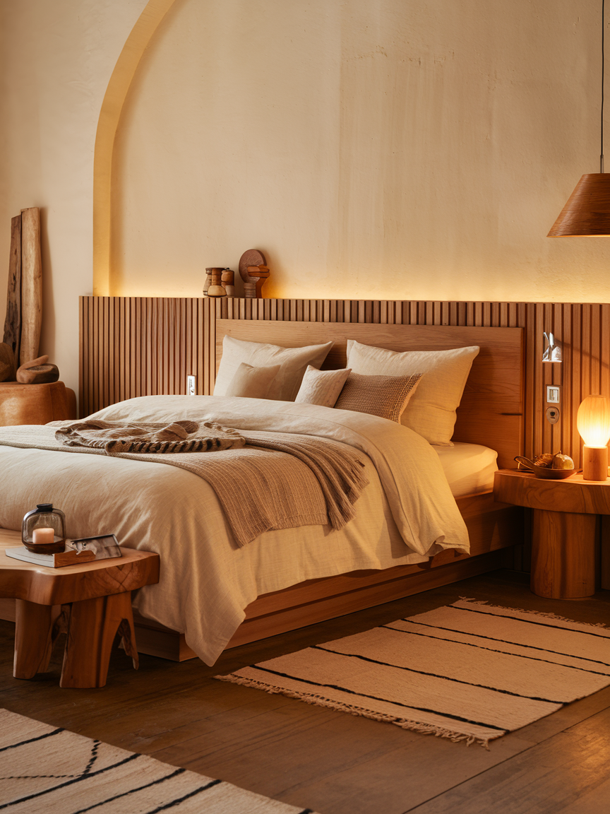 Natural wood furniture introduces organic warmth that instantly softens a bedroom. Opt for warm-toned woods like oak, walnut, or acacia to create a grounded feel. Wooden bed frames, nightstands, and dressers add texture and balance to soft textiles. The visible grain patterns contribute depth and character without feeling heavy. Pair wood elements with neutral bedding and warm lighting to create a harmonious environment that feels inviting and timeless.