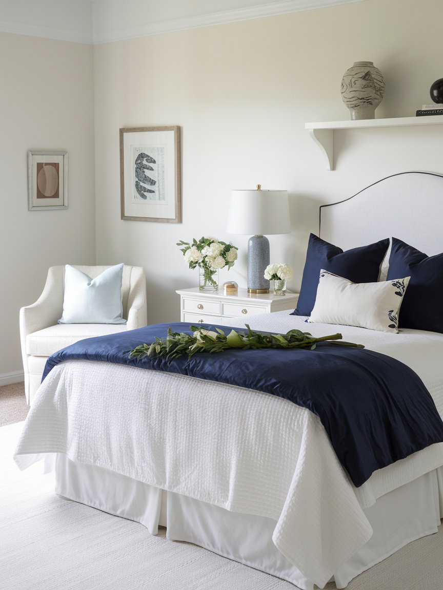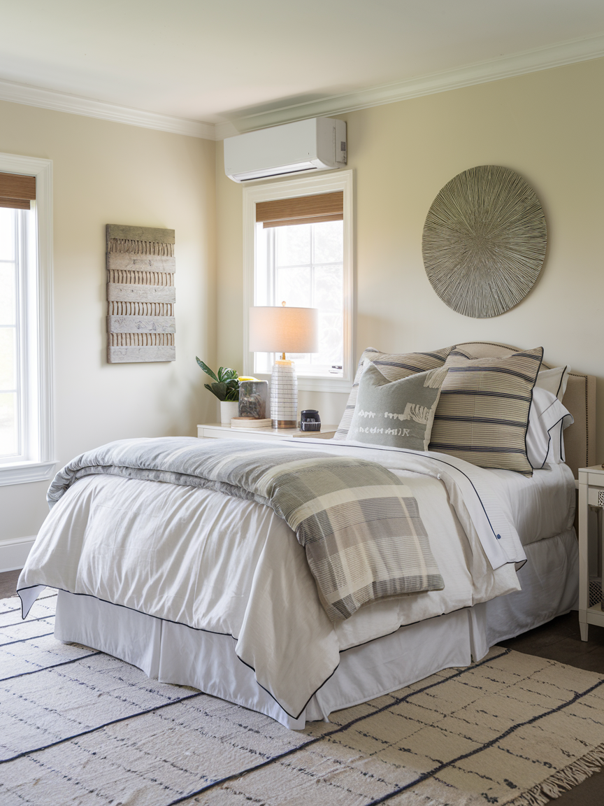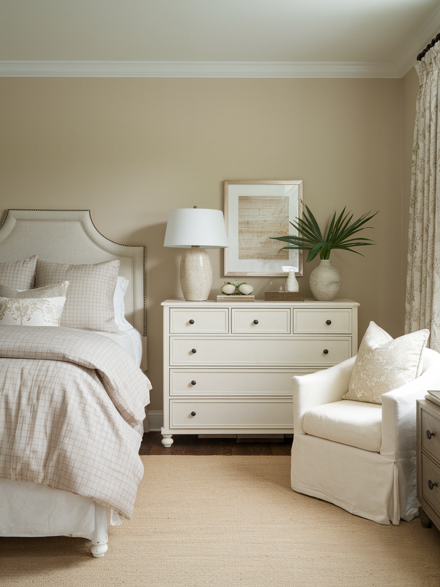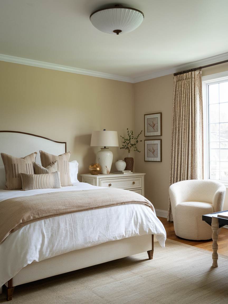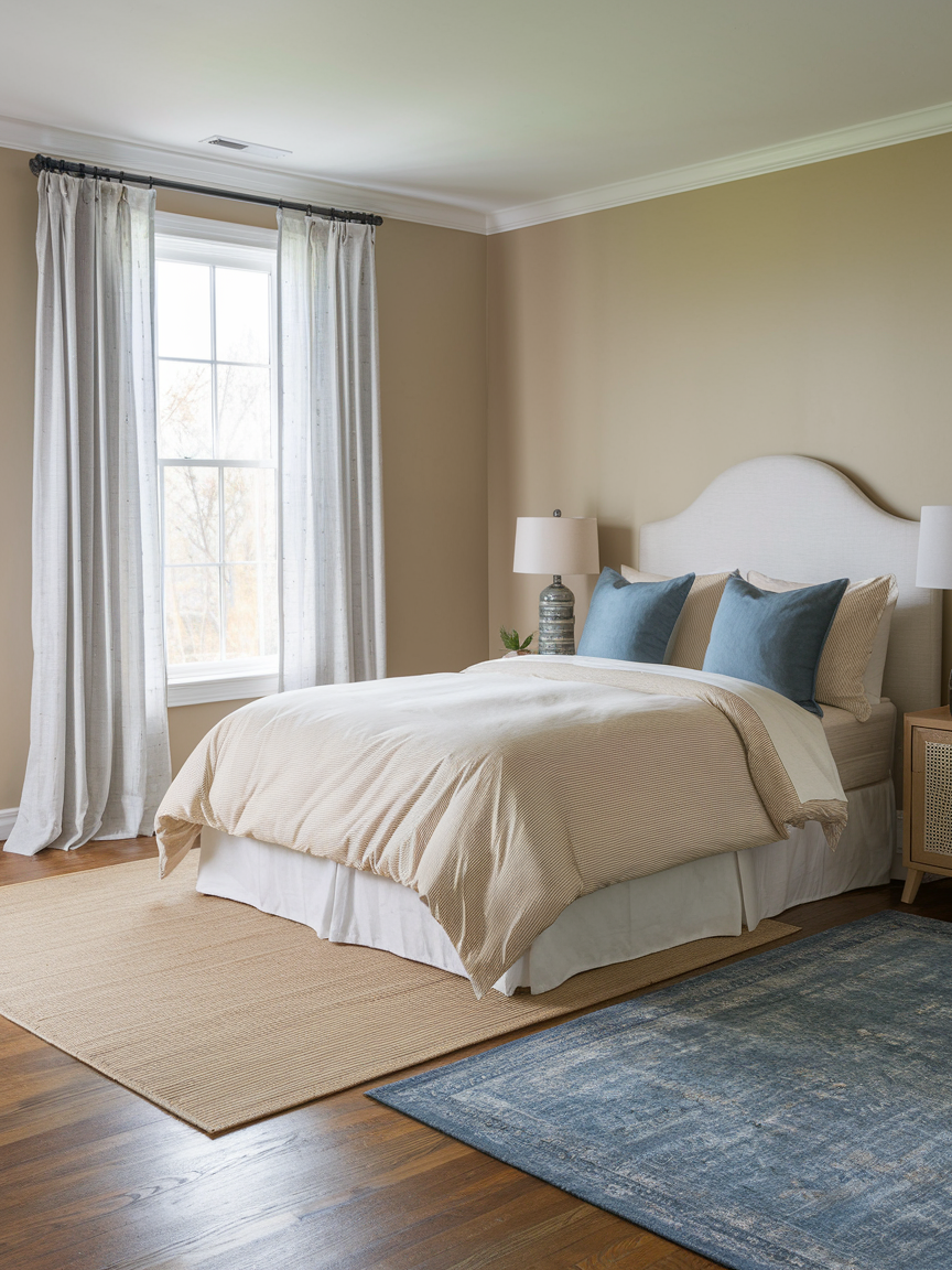 Neutral tones create a universally appealing and calming atmosphere. Soft whites, warm beiges, muted blues, or gentle grays provide a serene foundation that works for a wide range of tastes. A neutral backdrop also allows decorative accents, such as patterned pillows or artwork, to stand out gracefully. The result is a balanced space that feels airy, restful, and elegant without being overly personalized or overwhelming.