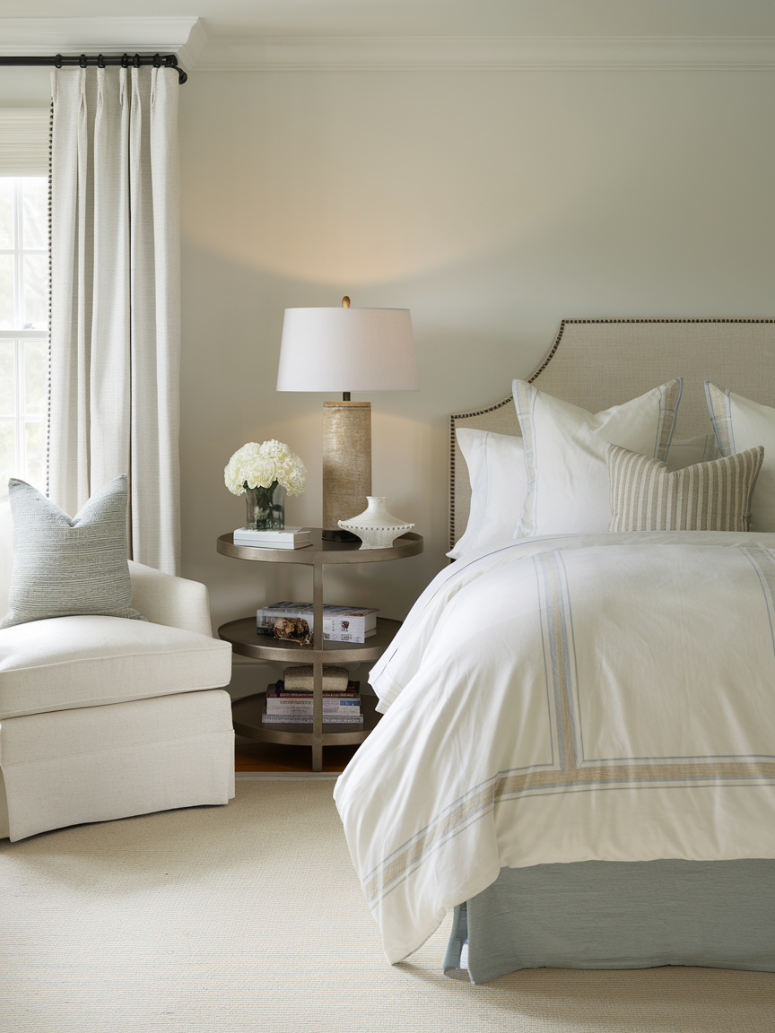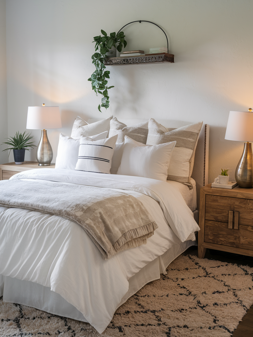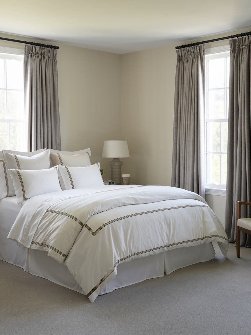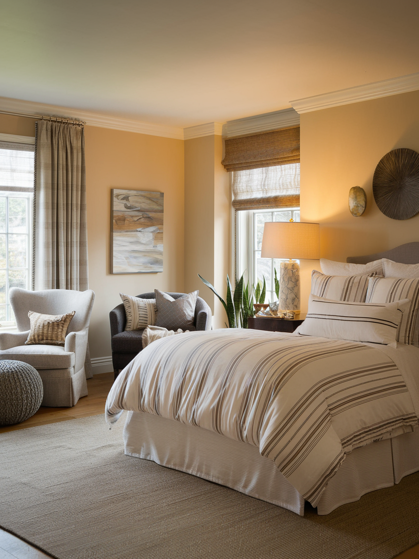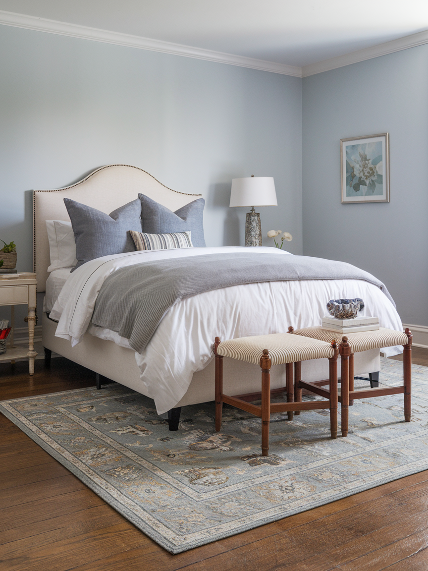 Neutral tones create a universally appealing and calming atmosphere. Soft whites, warm beiges, muted blues, or gentle grays provide a serene foundation that works for a wide range of tastes. A neutral backdrop also allows decorative accents, such as patterned pillows or artwork, to stand out gracefully. The result is a balanced space that feels airy, restful, and elegant without being overly personalized or overwhelming.