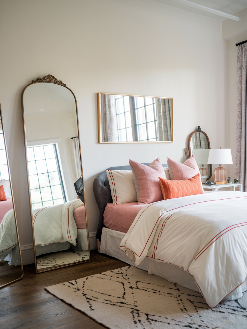 Mirrors are both practical and visually transformative in a guest bedroom. A full-length mirror allows guests to check outfits comfortably, which is particularly helpful for longer stays or special occasions. Smaller decorative mirrors can reflect natural light, making the room appear brighter and more spacious. Consider placing a mirror opposite a window to maximize daylight and create an airy feel. Frames in wood, metal, or neutral finishes can enhance the overall decor style. Beyond aesthetics, mirrors provide convenience and independence, allowing guests to get ready without needing to use a shared bathroom mirror constantly. This simple addition demonstrates thoughtfulness and significantly improves usability.