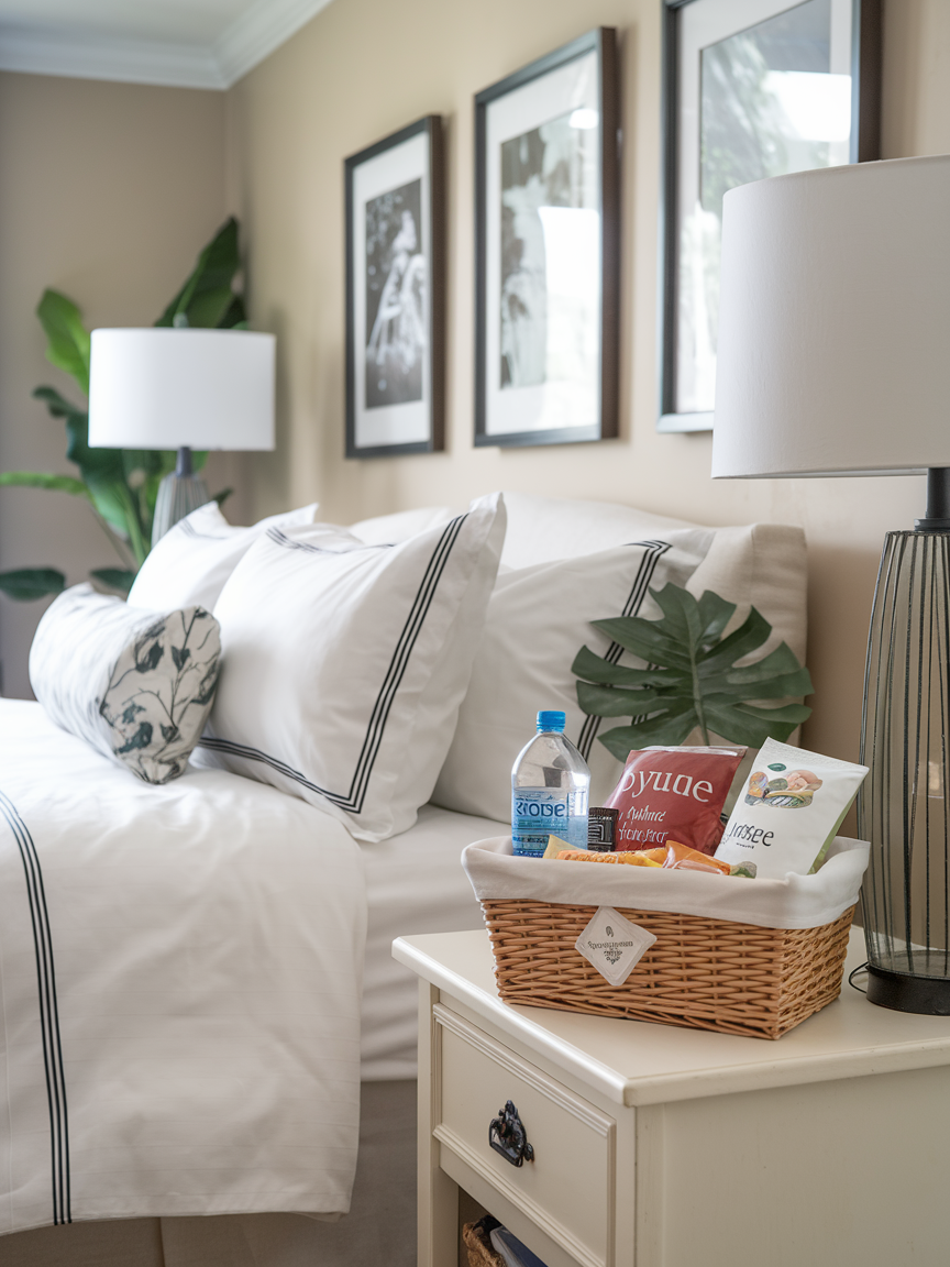 A welcome basket is a thoughtful gesture that immediately makes guests feel valued. Fill it with bottled water, light snacks, fresh fruit, or travel-size toiletries. You might also include local treats or a handwritten note to add a personal touch. Placing the basket on a dresser or bedside table creates a warm first impression. This small but meaningful detail shows that you’ve anticipated their needs and taken extra care to ensure their comfort. Guests often remember these thoughtful touches long after their stay.