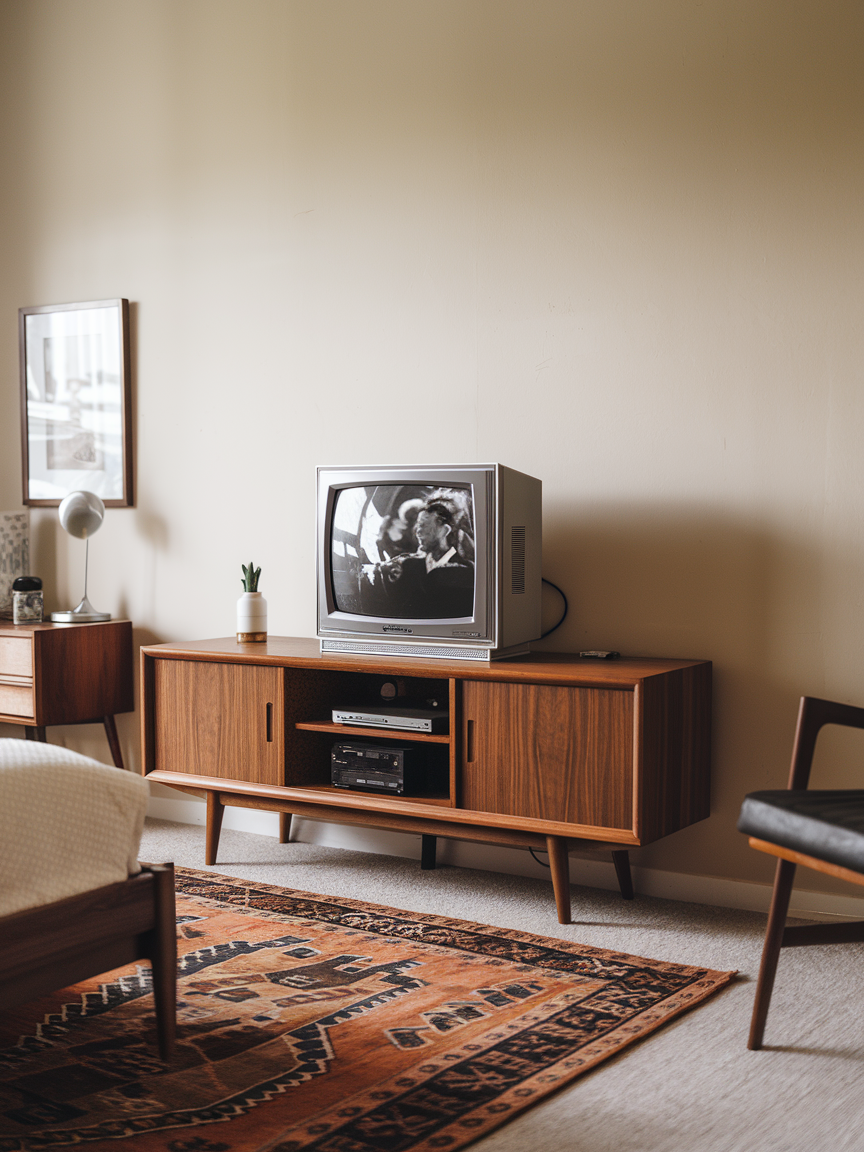 25. Vintage TV Setup with Mid-Century Modern Design