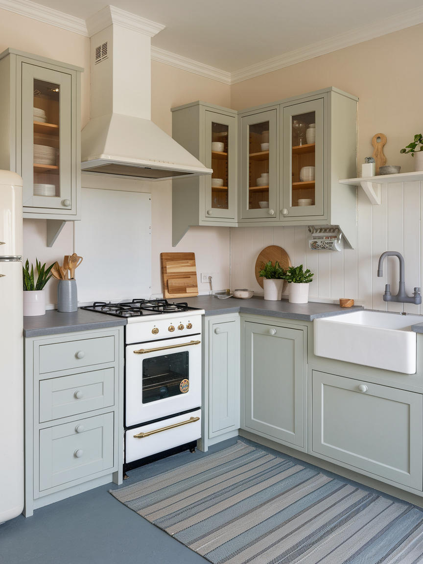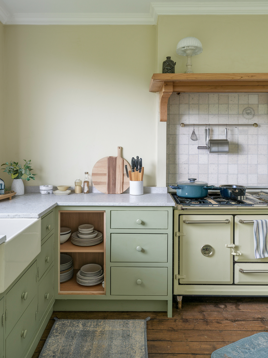 Sage green and cream offer a calming and nature-inspired palette that promotes relaxation and comfort. The muted green brings a soft, earthy quality to the space, while cream enhances brightness without the starkness of white. This combination feels gentle and cohesive, making it ideal for creating a serene kitchen environment. Paired with natural wood or subtle metallic accents, the look becomes even more inviting and balanced.