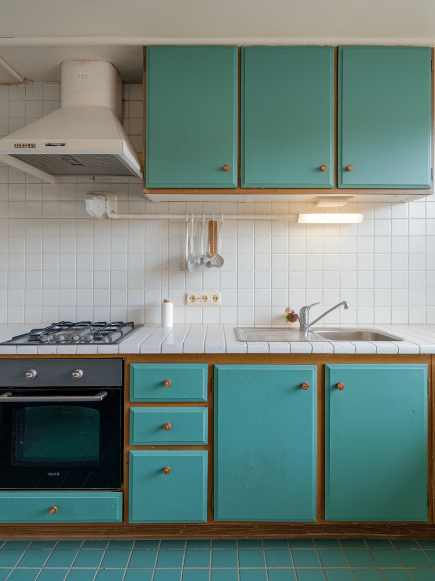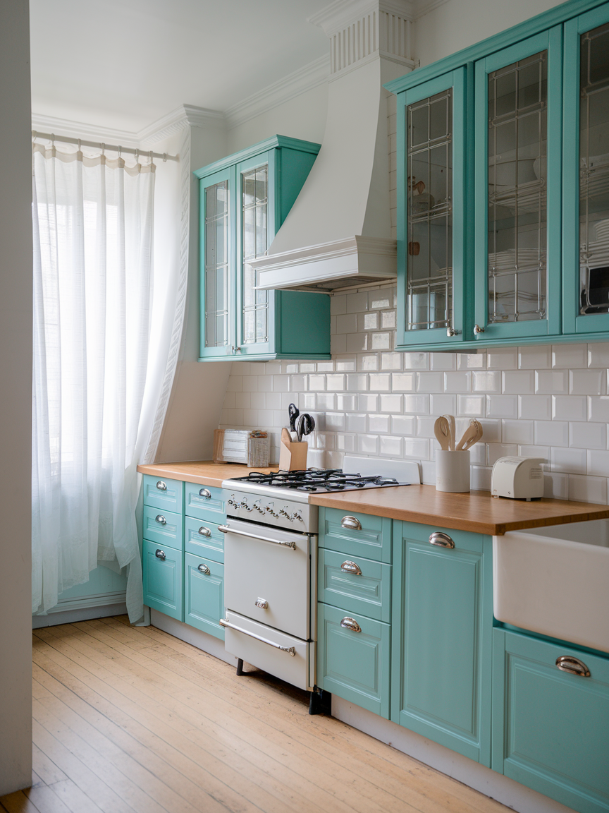 Turquoise and white bring a refreshing and playful energy to the kitchen. The bright blue-green hue adds vibrancy and personality, while white keeps the design clean and airy. This pairing is especially effective in smaller kitchens, where light colors help create a sense of openness. Accents of wood or metal can add balance and warmth, resulting in a space that feels cheerful and inviting.