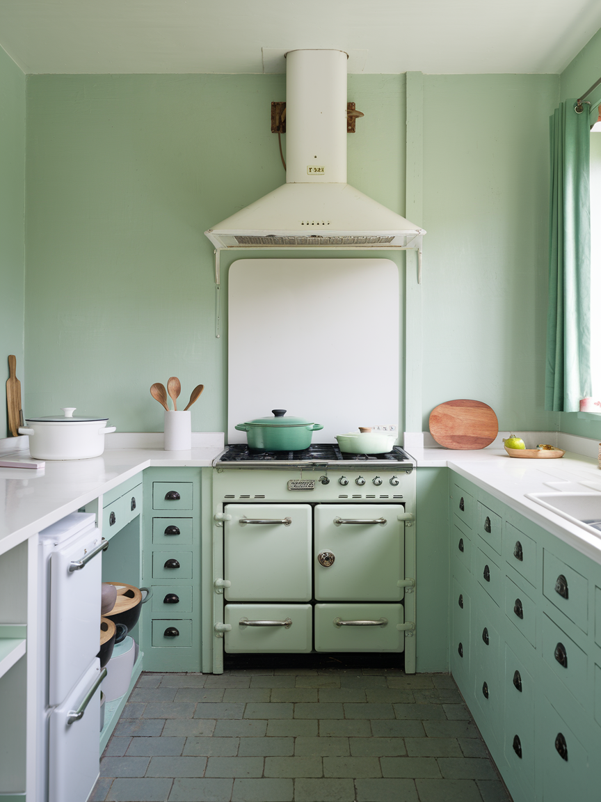 Mint green and white create a light and cheerful kitchen that feels fresh and welcoming. The soft green introduces a subtle pop of color, while white keeps the space bright and clean. This combination is perfect for creating a relaxed and inviting atmosphere, especially in casual or family-friendly kitchens. The gentle contrast ensures the design remains balanced and visually appealing.