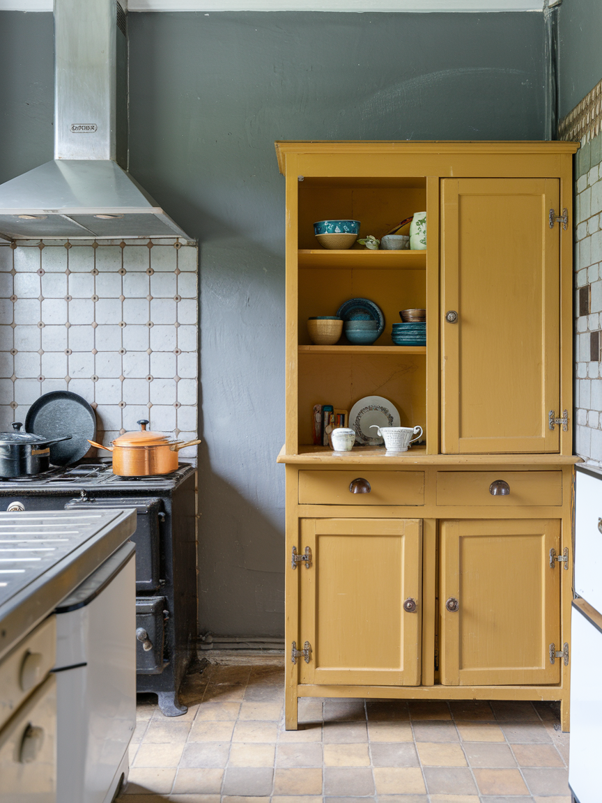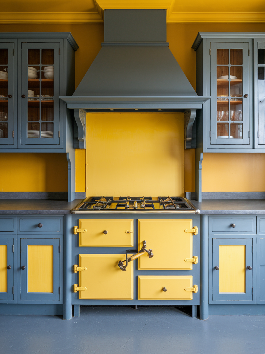 Mustard paired with grey creates a bold yet balanced kitchen aesthetic that feels modern and full of personality. The richness of mustard adds warmth and energy, while grey tones it down for a more refined look. This combination works particularly well when used strategically, allowing mustard to act as an accent rather than overpower the space. The result is a kitchen that feels stylish, vibrant, and thoughtfully designed.