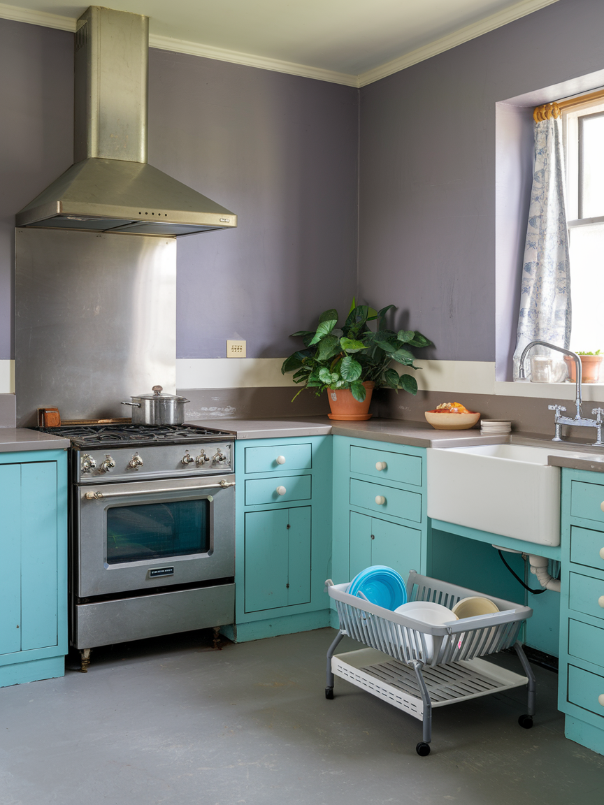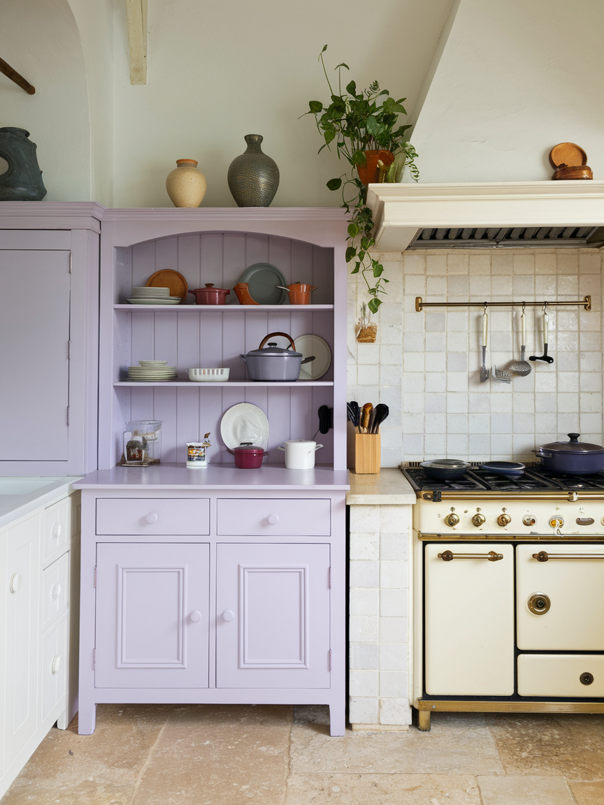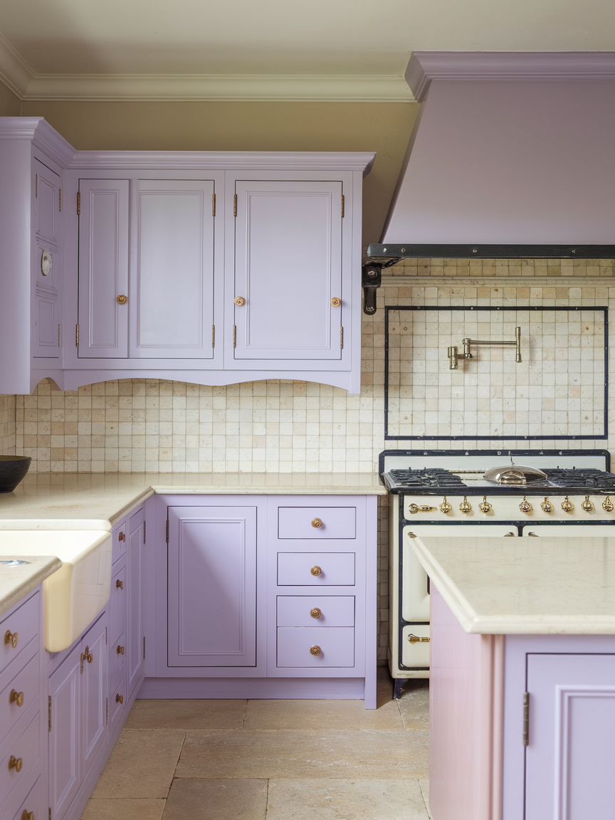 Lavender and cream create a gentle, soothing kitchen palette that feels both elegant and slightly whimsical. The soft purple hue adds a unique touch of personality, while cream keeps the space warm and approachable. This combination works particularly well in kitchens that aim for a relaxed, romantic atmosphere. Incorporating natural textures such as wood, linen, or stone can help ground the softness and add depth. Metallic accents like gold or brushed brass further enhance the refined feel. Cooking in a lavender and cream kitchen feels calm and enjoyable, turning everyday tasks into more pleasant experiences. The result is a space that feels charming, distinctive, and beautifully balanced.