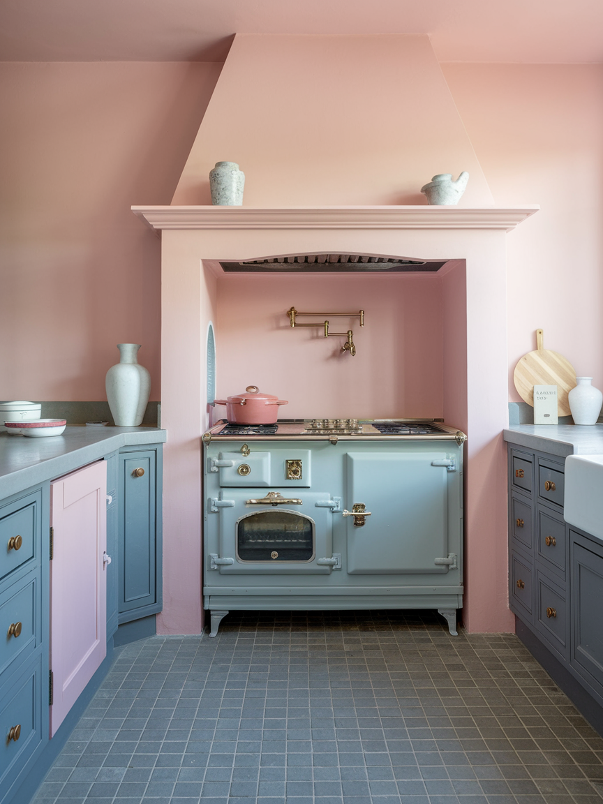 Soft pink and grey create a delicate yet modern palette that feels both stylish and approachable. The muted pink introduces a gentle warmth and personality, while grey anchors the design with subtle sophistication. This pairing works particularly well in contemporary kitchens where a touch of softness is desired without sacrificing elegance. Layering textures such as marble, fabric, or brushed metal can enhance the overall look. The result is a kitchen that feels light, inviting, and quietly refined.