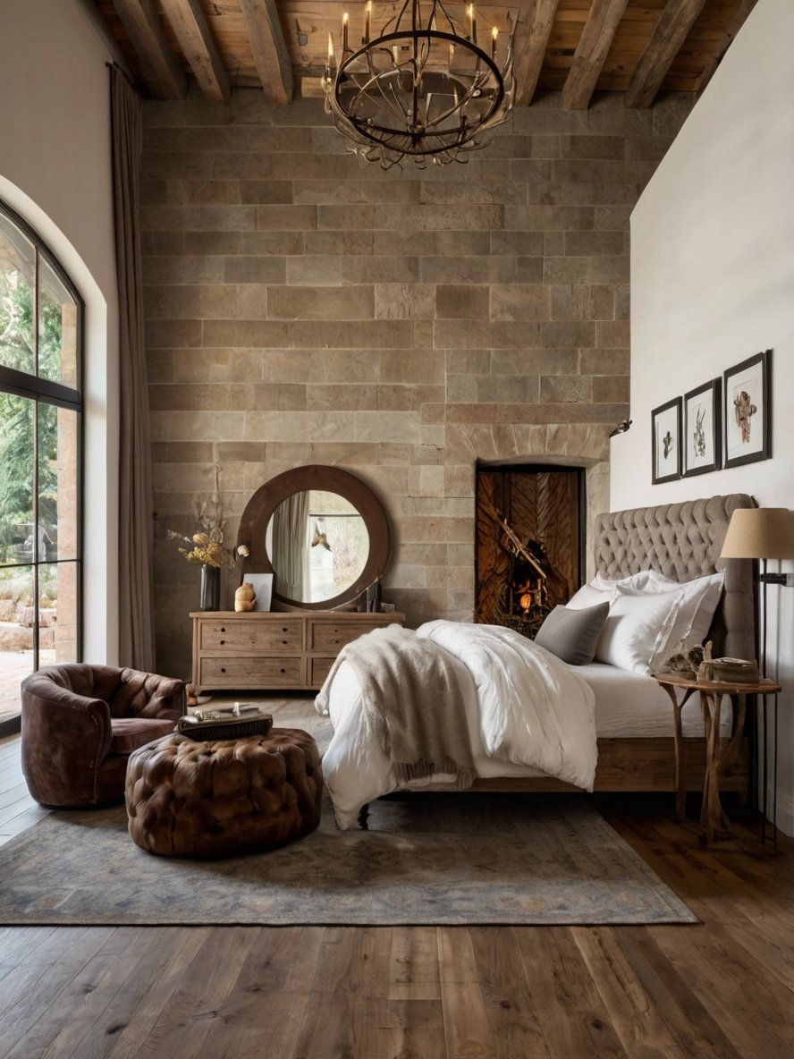 A rustic bedroom exudes warmth, comfort, and timeless charm, making it the perfect retreat to unwind and escape the hustle and bustle of daily life. Natural materials like reclaimed wood, stone, and soft linens bring an inviting and earthy vibe, creating a space that feels both cozy and sophisticated. The rustic design embraces simplicity, celebrating the raw beauty of the outdoors. Earthy tones, layered textures, and handcrafted details work together to give the room a grounded, organic atmosphere that feels truly welcoming.