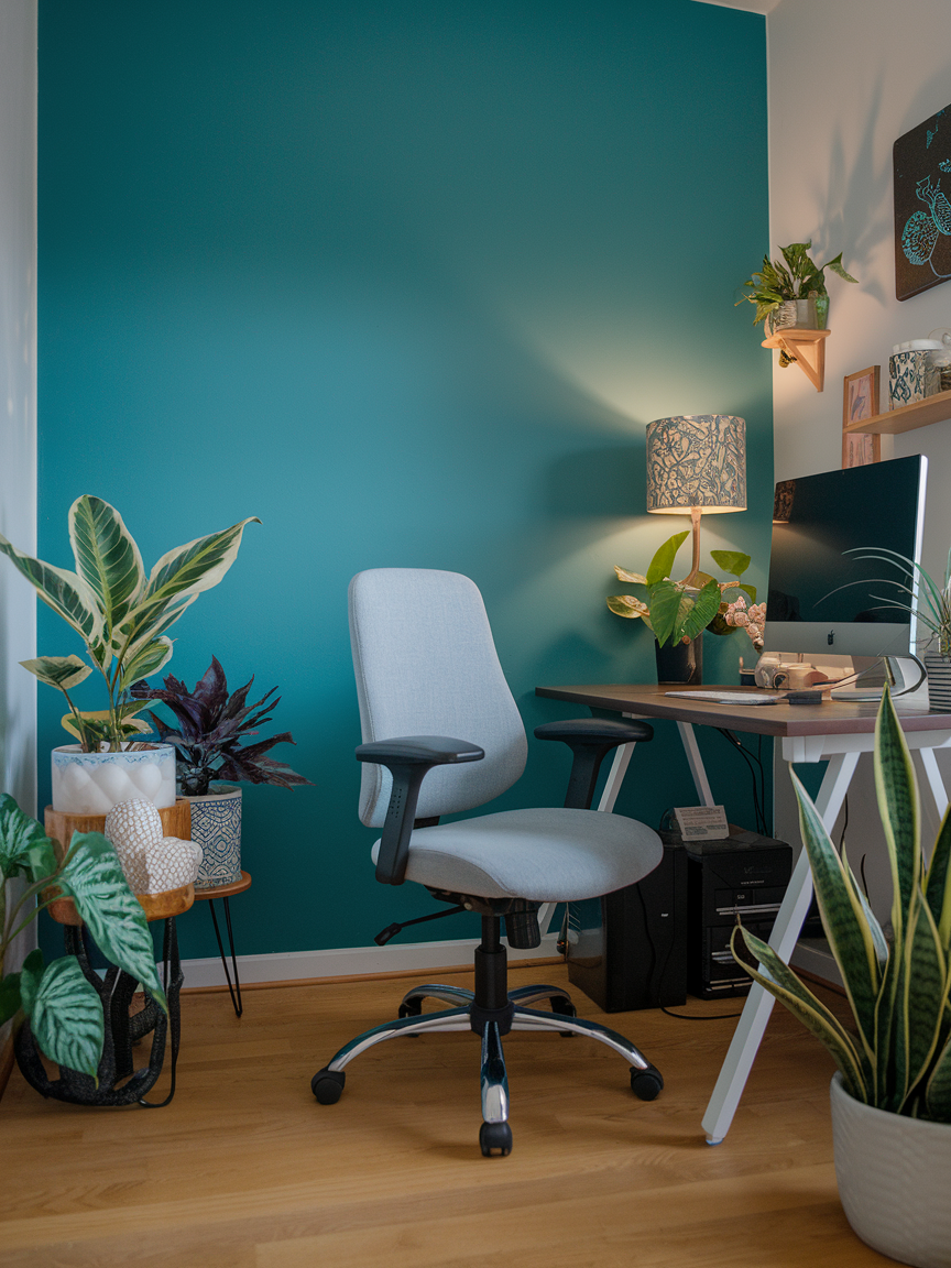Even in the tiniest space, color can completely shift your mood and energy. If you feel drained staring at beige walls, add a bold accent like teal, mustard, or even blush pink to one section of your office. It instantly livens things up without overwhelming the room. You do not have to repaint the whole space either. A colorful chair, desk accessories, or even a rug can do the trick. This is especially helpful if your office doubles as part of another room and you want it to stand out as its own little zone.