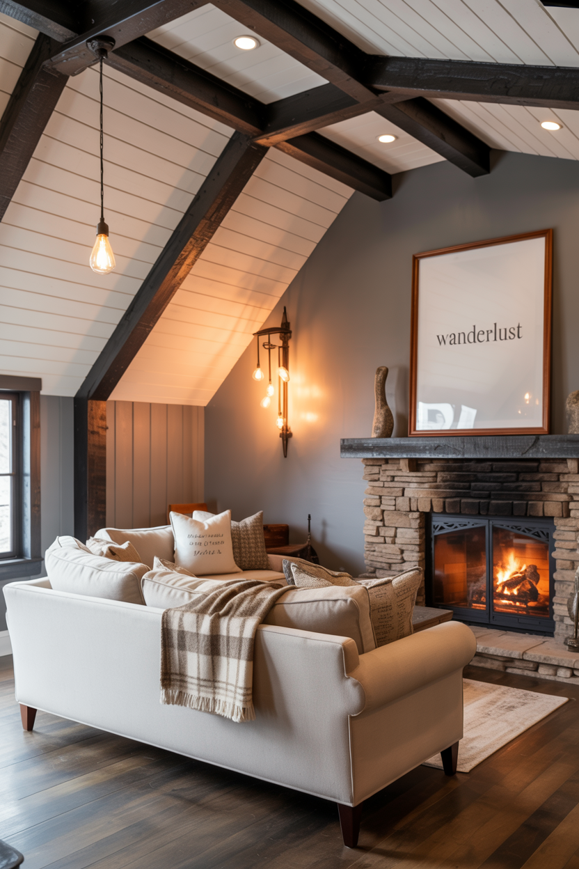 6. Shiplap and Beams in a Cozy Attic Retreat