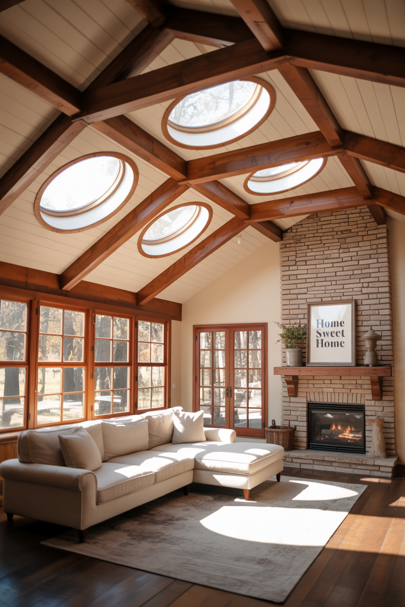 Incorporating skylights into a shiplap and beam ceiling brings both beauty and practicality. The natural light flows in, making the wood details pop and the space feel more open and connected to nature. Beams can be placed to frame the skylights for an intentional architectural feel. Whether you’re adding light to a kitchen, living room, or upstairs loft, this combo blends rustic warmth with airy modern design.