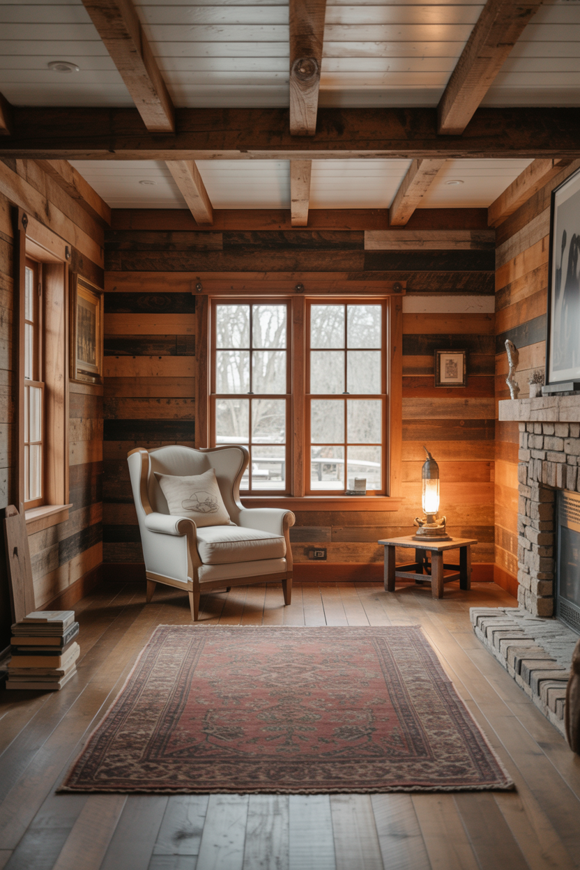This timeless combination never goes out of style. White shiplap brings a fresh, airy feel to a space, while natural wood beams ground the look with warmth and texture. The clean lines of the shiplap make any room feel open and organized, while the wood tones introduce rustic authenticity. This pairing is perfect for living rooms, kitchens, and entryways where you want a cozy, welcoming atmosphere that still feels bright and refined.