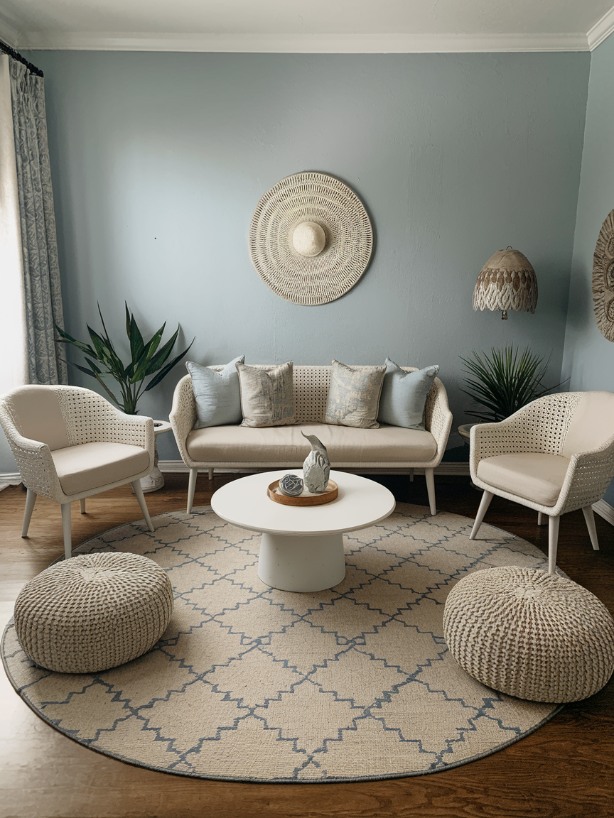An open and uncluttered layout is essential for achieving that airy coastal feel. Arranging furniture in a way that promotes easy movement and clear pathways helps the room feel larger and more inviting. I always find that giving each piece enough space to stand on its own enhances both functionality and aesthetics. This openness allows natural light to flow freely, highlighting textures and creating a calm, breathable environment.
