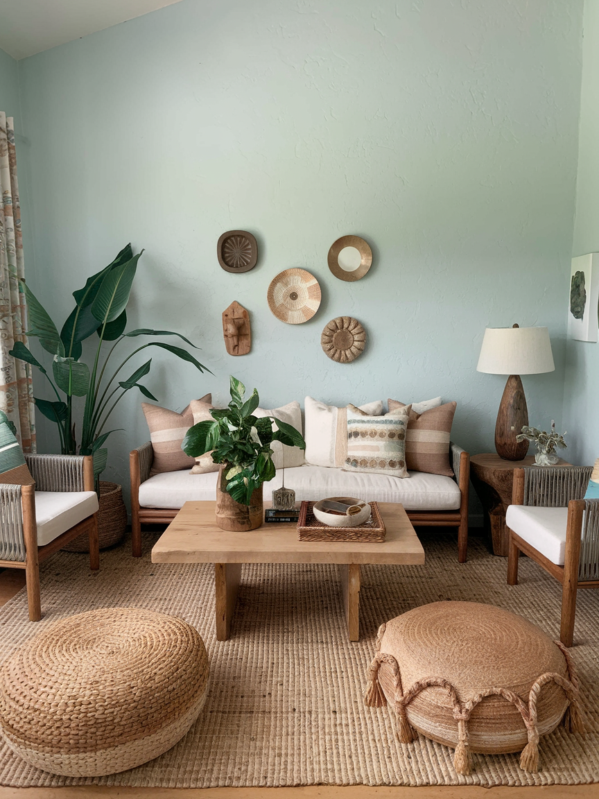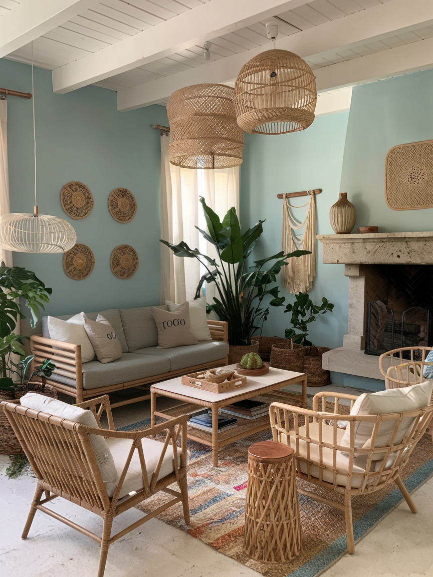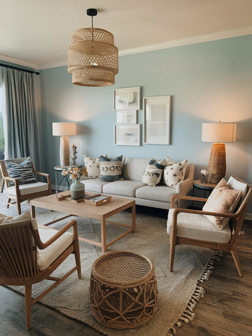 Woven materials such as rattan, wicker, and seagrass instantly add depth and a tactile quality to your living room. These elements bring an organic, handcrafted feel that defines the boho coastal aesthetic. Incorporating woven baskets, accent chairs, or even pendant lights introduces warmth without heaviness. I love how these textures soften the space and make it feel more approachable, ensuring the room feels layered, cozy, and naturally inviting rather than overly styled or rigid.