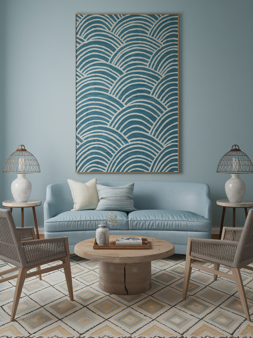 Incorporating subtle patterns inspired by the sea adds gentle movement and personality to the space. Soft stripes, wave-like designs, or organic motifs can appear in textiles like rugs, pillows, or throws. Keeping patterns understated ensures they enhance the room without dominating it, maintaining a cohesive and calming aesthetic.