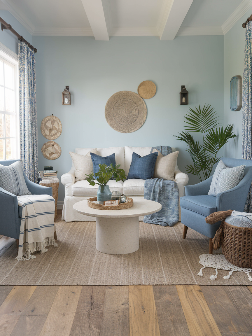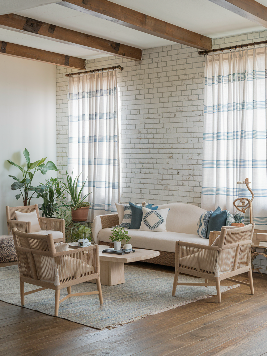Sheer or lightweight curtains are essential for achieving that breezy, coastal ambiance. Fabrics like linen or cotton allow natural light to filter through gently, softening the room’s overall look. I love how they move subtly with the breeze, adding a sense of calm motion to the space. Keeping window treatments light and minimal ensures the room feels open, fresh, and filled with natural brightness throughout the day.