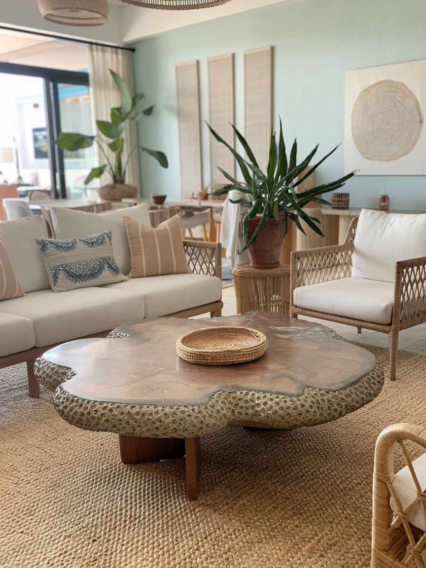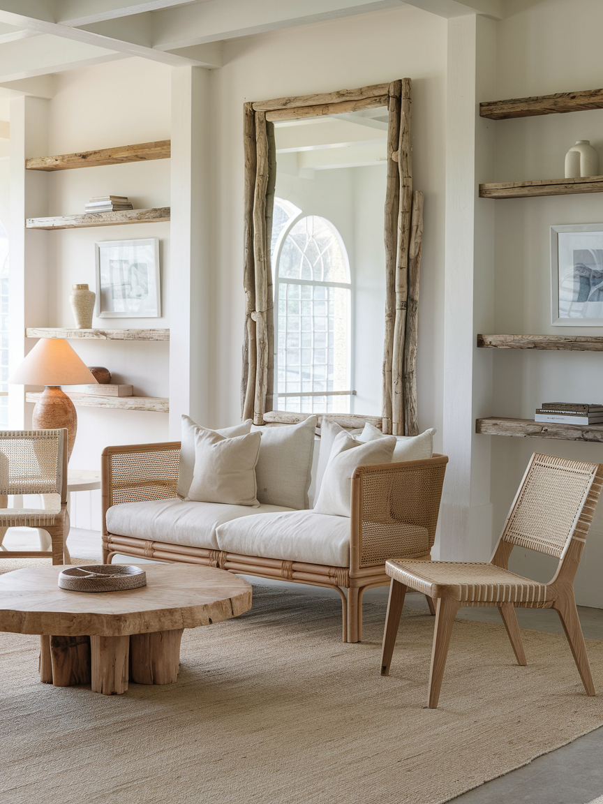 Driftwood décor pieces bring an authentic coastal touch that feels organic and understated. Whether used in furniture, wall art, or small decorative accents, the weathered texture adds character and natural beauty. These imperfect finishes create a sense of ease and authenticity, making the space feel connected to nature. I especially love how driftwood introduces subtle contrast while still blending seamlessly with neutral tones and soft textures.