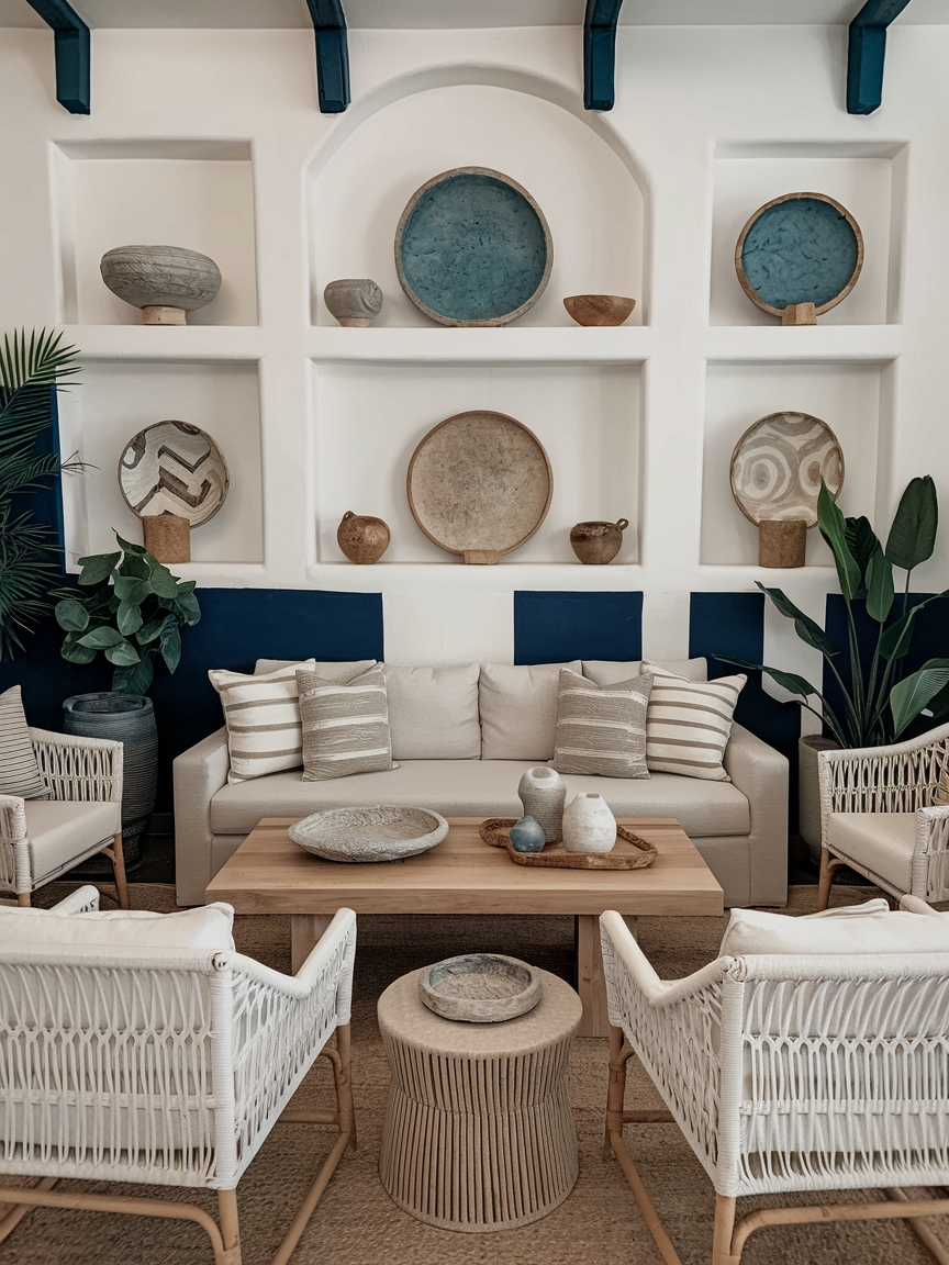 Handcrafted décor brings a sense of authenticity and individuality that elevates any boho coastal space. Items like handmade pottery, woven baskets, or carved wooden accents add unique character and subtle imperfections that make the room feel more personal. These pieces often carry a story, which contributes to that collected-over-time aesthetic. Incorporating artisanal elements ensures the space feels warm, meaningful, and far from generic.