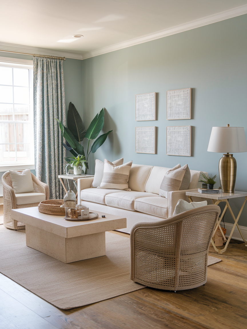 Subtle touches of ocean-inspired colors can transform the mood of your living room. Incorporate shades like soft blue, aqua, or muted green through cushions, throws, or decorative pieces. These accents bring a refreshing energy without overpowering the neutral base. I find that even small hints of color can make the space feel more lively while still maintaining its calm, cohesive aesthetic.