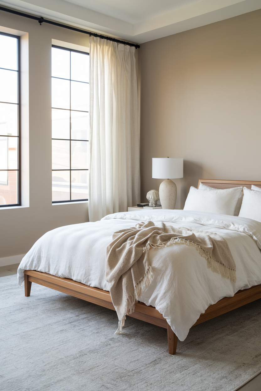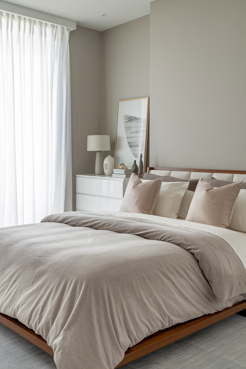 16. Warm Taupe Bedding for a Soft Earthy Ambience