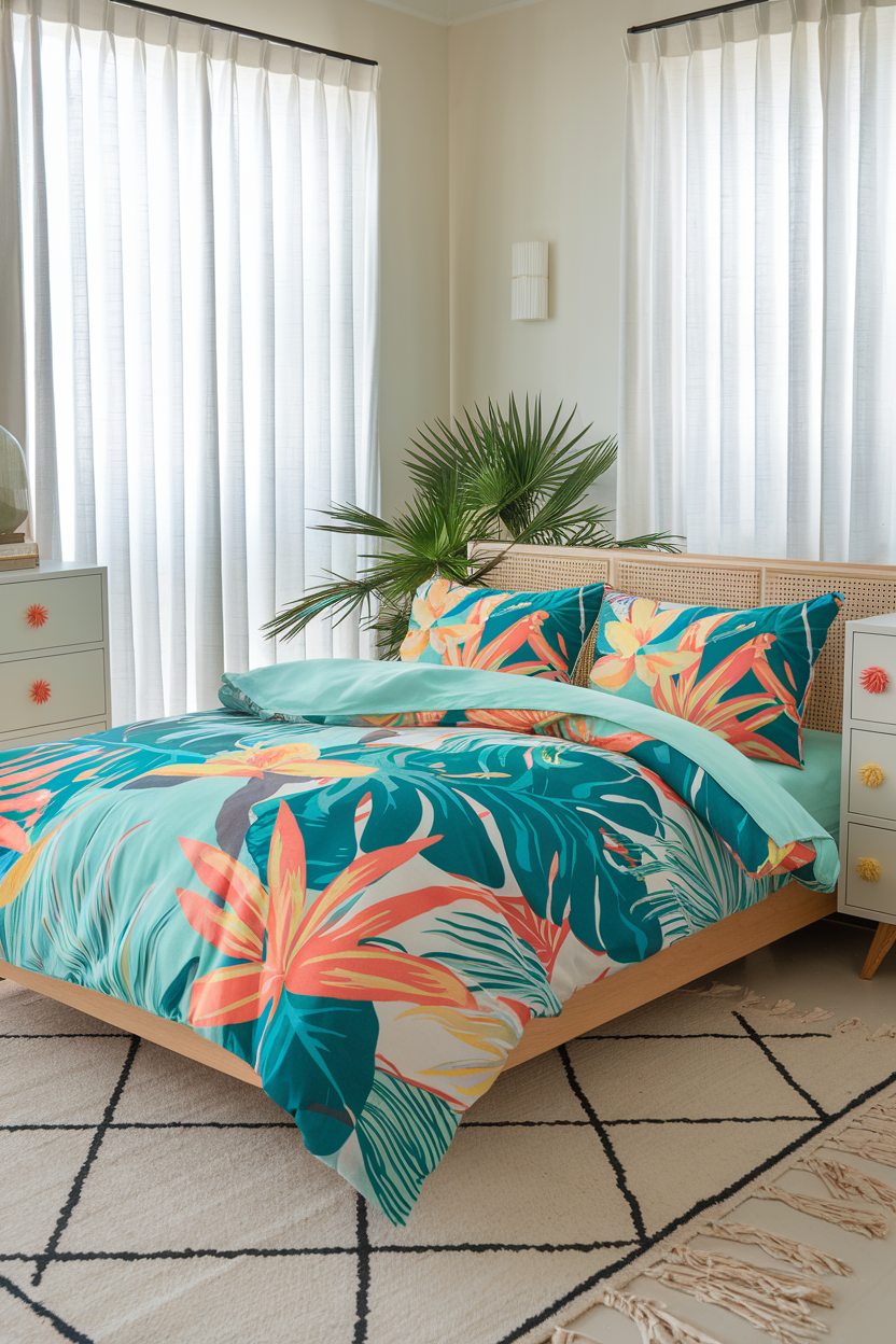 19. Tropical-Inspired Bedding for a Refreshing Escape