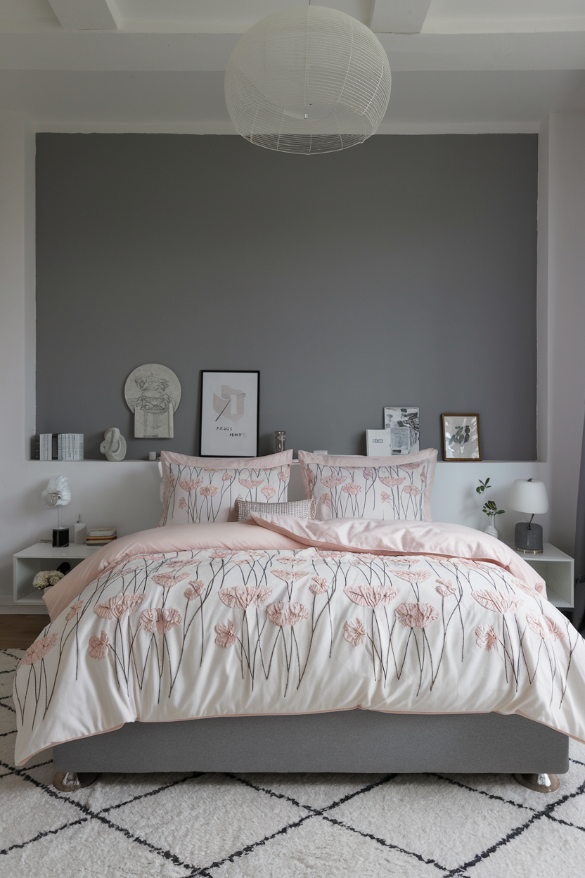 For a bedroom that feels as sophisticated as it is serene, floral embroidered bedding is an exquisite option. The delicate embroidery adds texture and intricate detail to your bedding while maintaining a calming, peaceful ambiance. Choose soft, muted colors like blush pink, lavender, or pale blue to create an elegant yet subtle look. The floral designs give your space a timeless, classic appeal, while the soft fabrics ensure comfort. This bedding style works particularly well in traditional or vintage-inspired bedrooms, where elegance and charm are key.