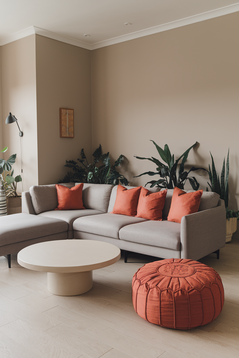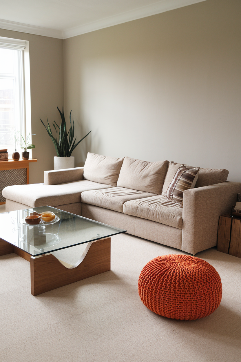 For those looking to bring a dash of glamour to their living room, a round velvet pouf is the way to go. Velvet’s soft, plush texture offers comfort, while its subtle sheen adds a sense of opulence to your decor. Available in a wide range of colors, from deep jewel tones like emerald green and sapphire blue to soft pastels such as blush pink and lavender, this pouf provides both visual interest and versatility. Its round shape allows it to fit comfortably in various spaces, and it doubles as both a footrest and a statement piece, instantly elevating any living room setup.