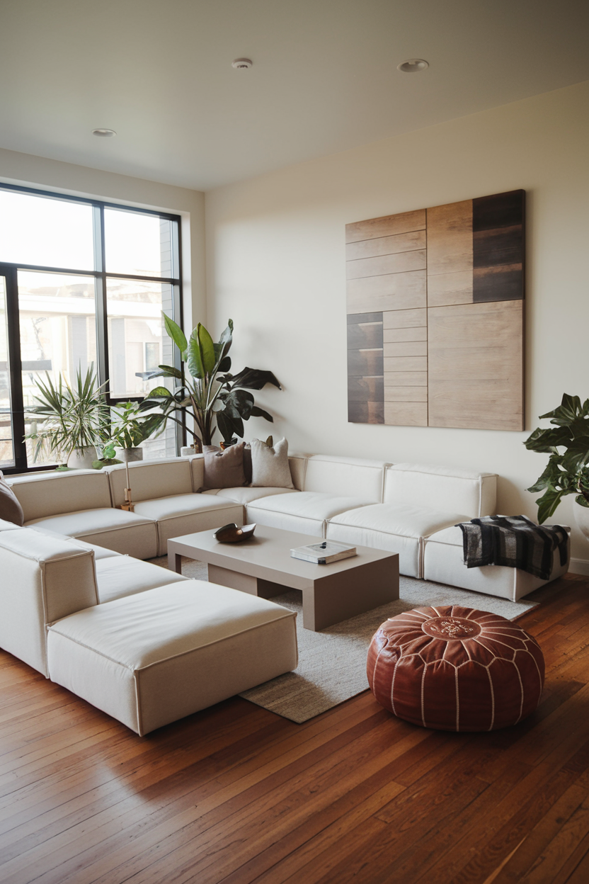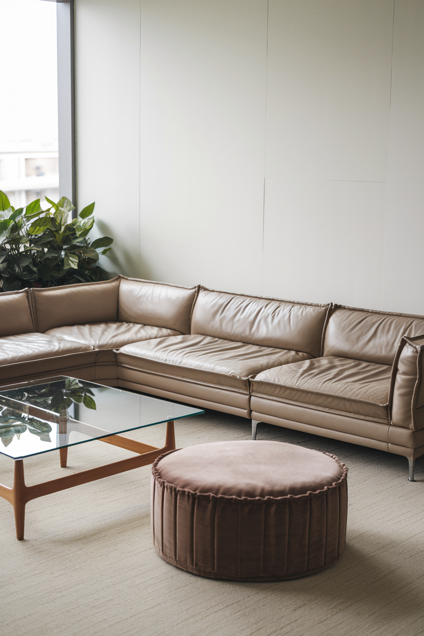 For a sleek and sophisticated look, a modern leather pouf is a top choice. Crafted from high-quality leather, this pouf is both durable and stylish, offering a polished, luxurious touch to any living room. Its minimalist design allows it to seamlessly fit into contemporary, industrial, or even mid-century modern spaces. Whether in a rich brown or a bold black hue, the modern leather pouf brings elegance and function to the room, doubling as both a footrest and extra seating when needed.