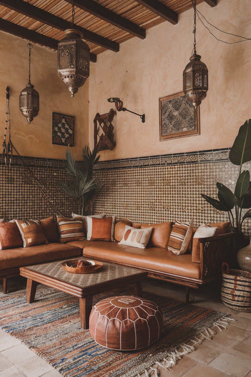 Add a touch of exotic elegance to your living room with a Moroccan leather pouf. Known for its luxurious craftsmanship and beautiful hand-stitched designs, this pouf elevates any living room with its deep, rich colors and smooth, supple leather. The warm tones, like tan, camel, and rich browns, make it a perfect accent piece for both modern and bohemian interiors. Not only is this pouf visually appealing, but its durable leather construction ensures that it will serve as a functional footrest or additional seating for years to come, all while adding an air of sophistication.