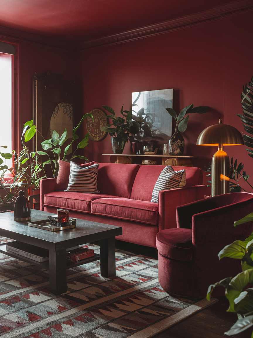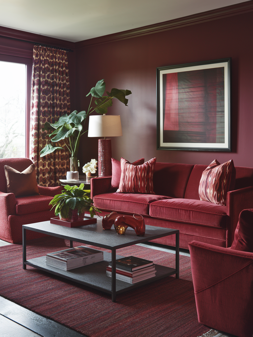 12. Sophisticated Warmth of Burgundy Living Room