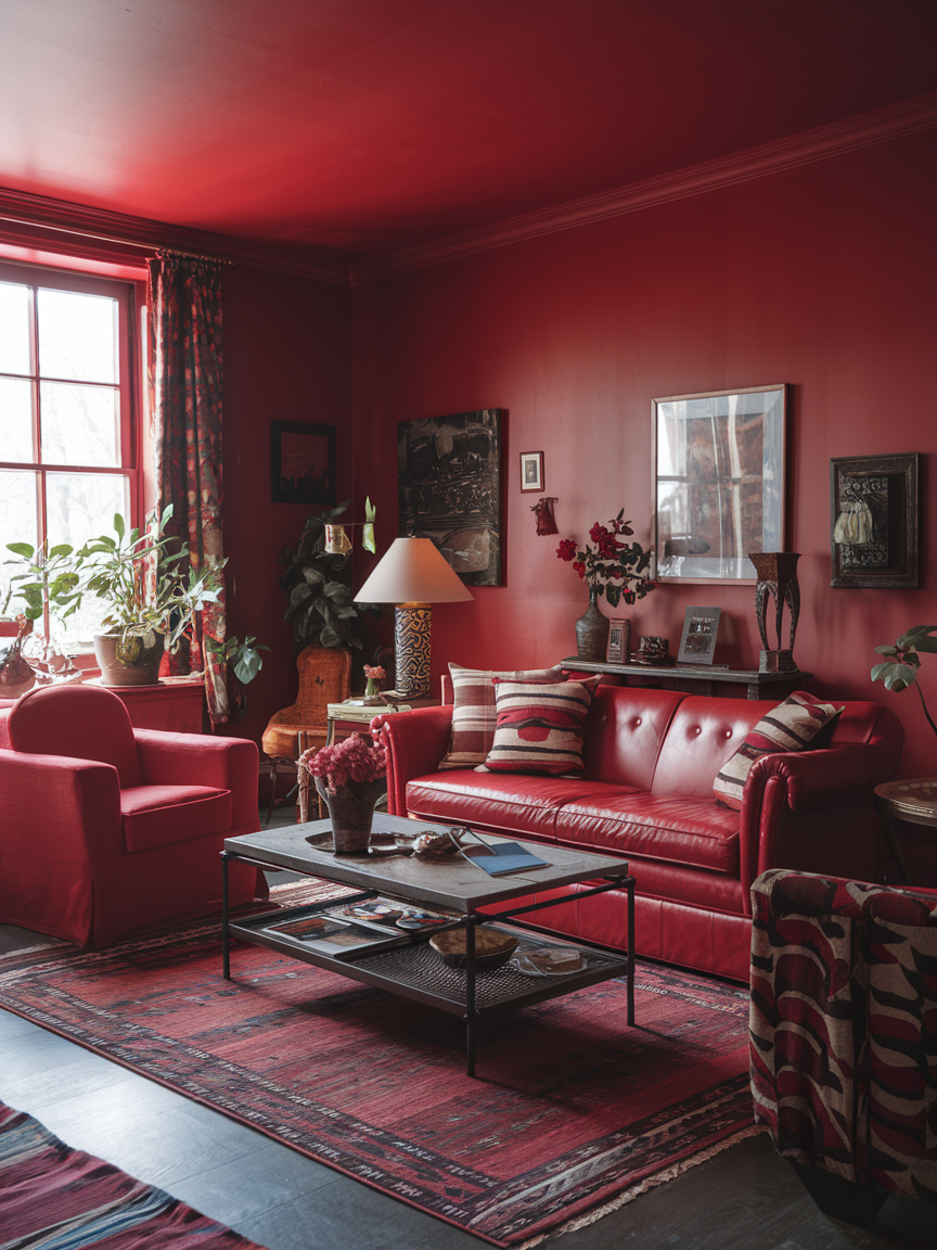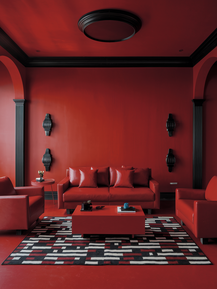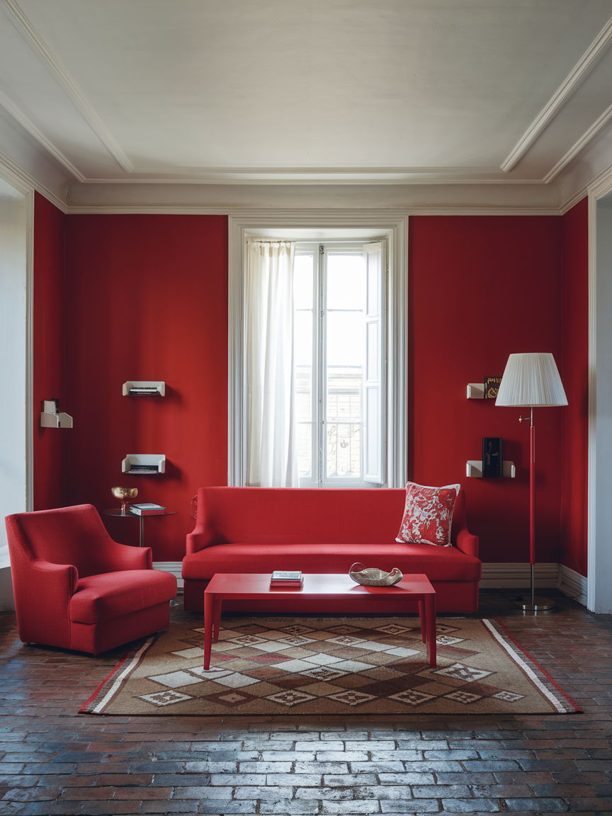 11. Bold Depth with Red Accent Walls